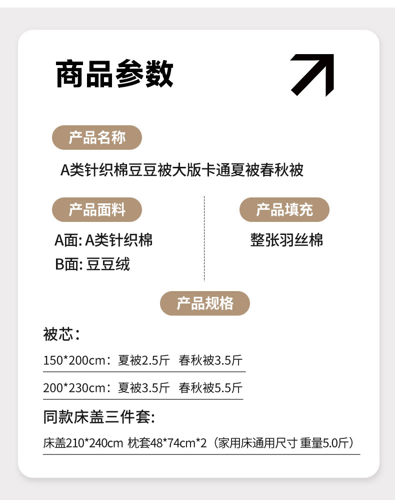 商品名称:梵克保罗 2026春夏直播热款A类针织棉豆豆被夏被春秋被空调被儿童学生大版卡通被子被芯 大头贴