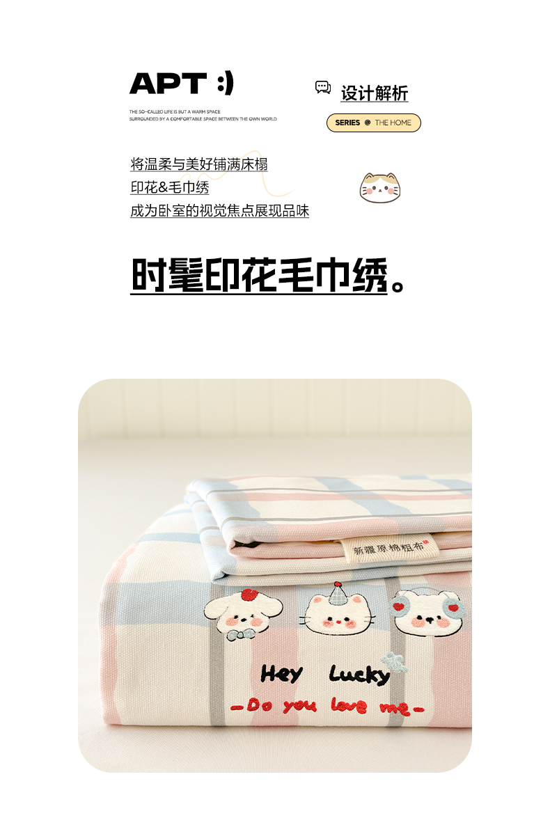 当前位置: 91家纺网 > 商品网购 > 床上用品 > 凉席 > 其他凉席 > 雅居纺家纺 2026新款毛巾绣全棉纯棉老粗布席子凉席床笠床单 彩格萌宠