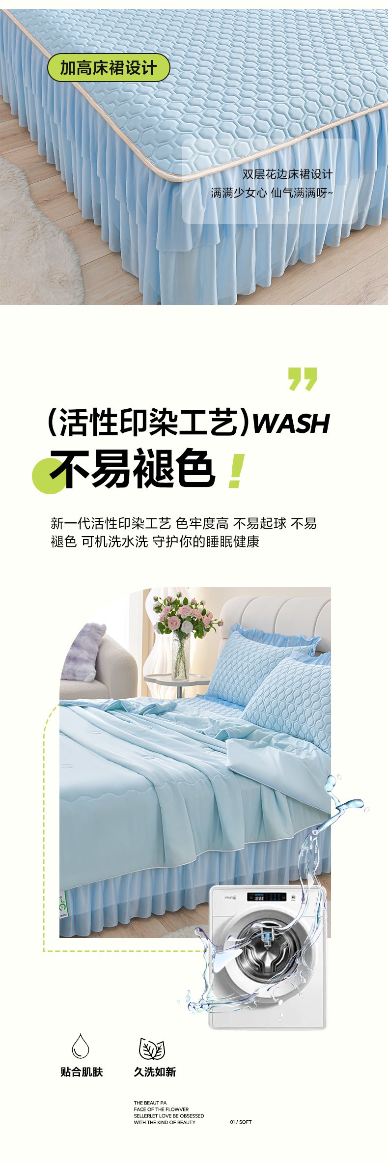 • 91家纺网 家纺一手货源 找家纺 (总)畅畅家纺 2026春夏新款聚乙烯中分子双面提花高克重凉感冰感凉豆豆床裙三件套-经典玫瑰,经典玫瑰-粉,经典玫瑰-灰,经典玫瑰-蓝,经典玫瑰-绿