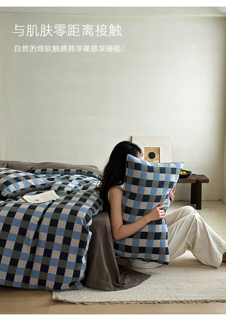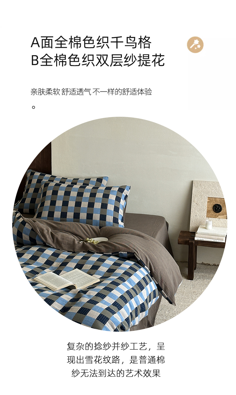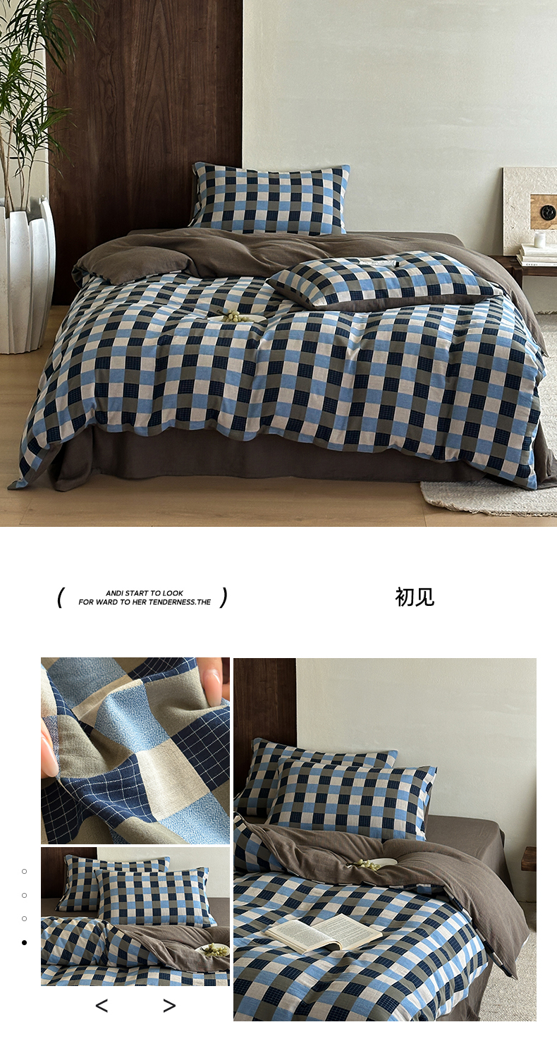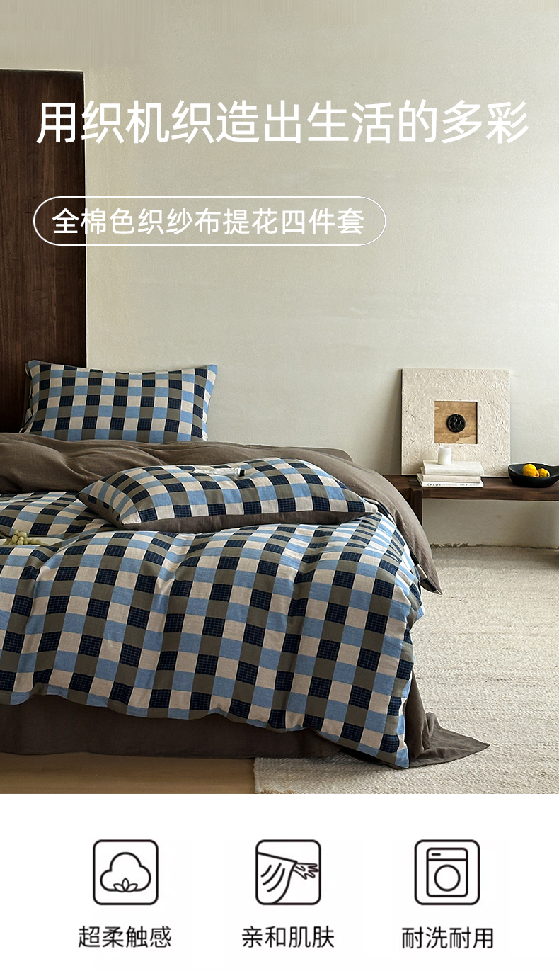 当前位置: 91家纺网 > 商品网购 > 床品套件 > 四件套 > 全棉普通四件套 > 山舍家居 2026春夏新款全棉纯棉色织纱布提花四件套 初见