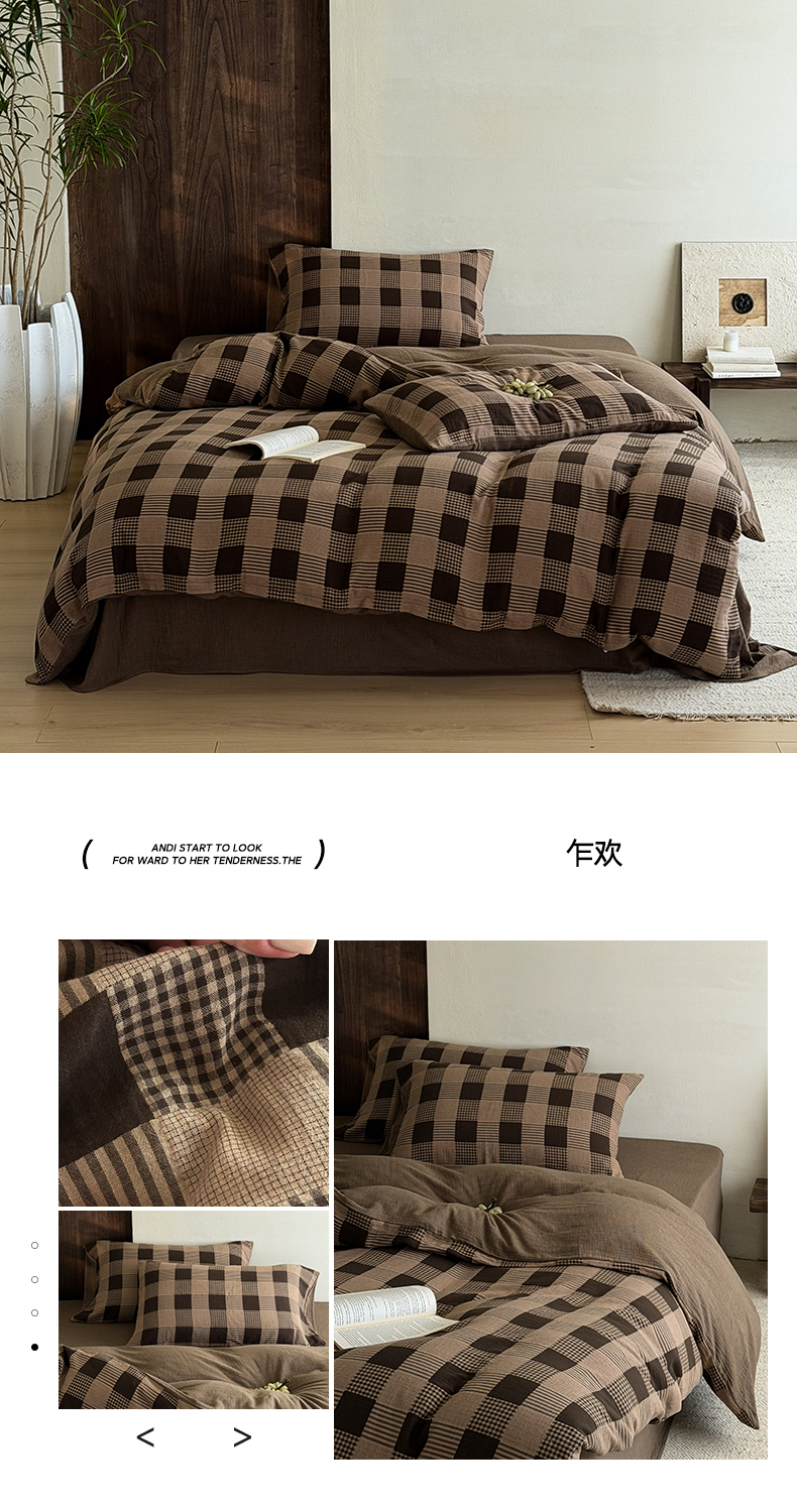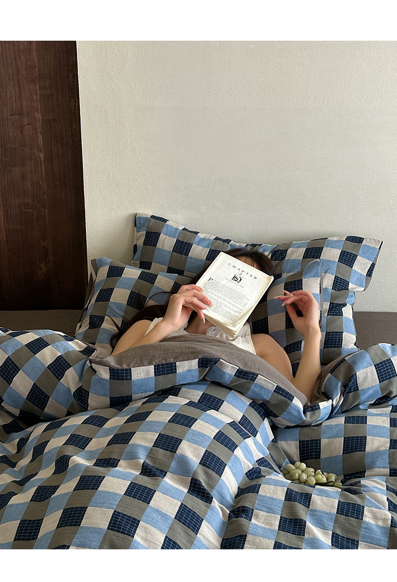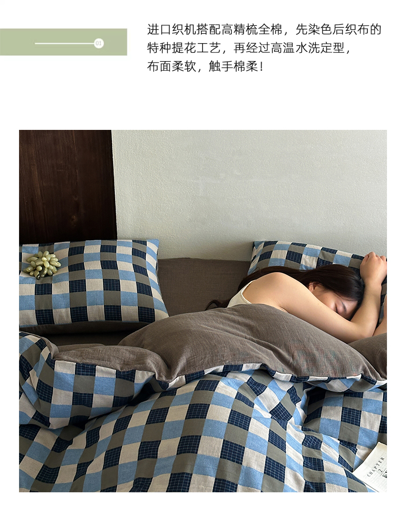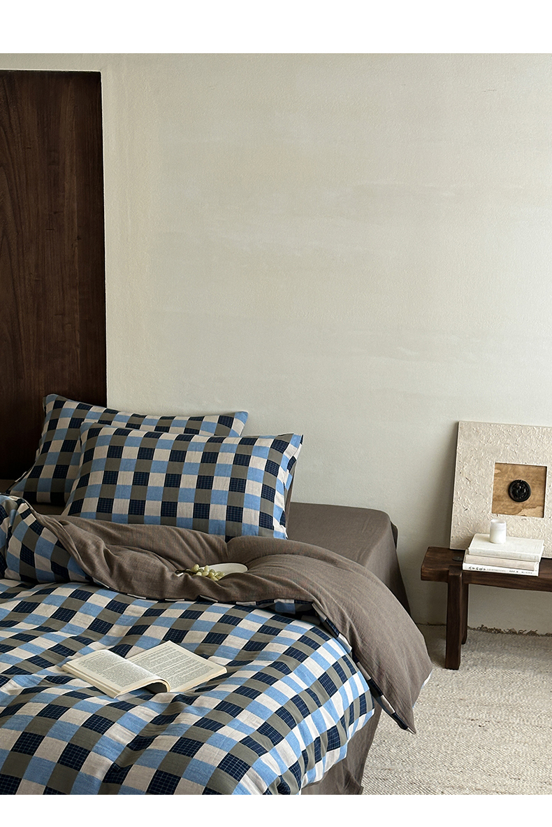 当前位置: 91家纺网 > 商品网购 > 床品套件 > 四件套 > 全棉普通四件套 > 山舍家居 2026春夏新款全棉纯棉色织纱布提花四件套 初见