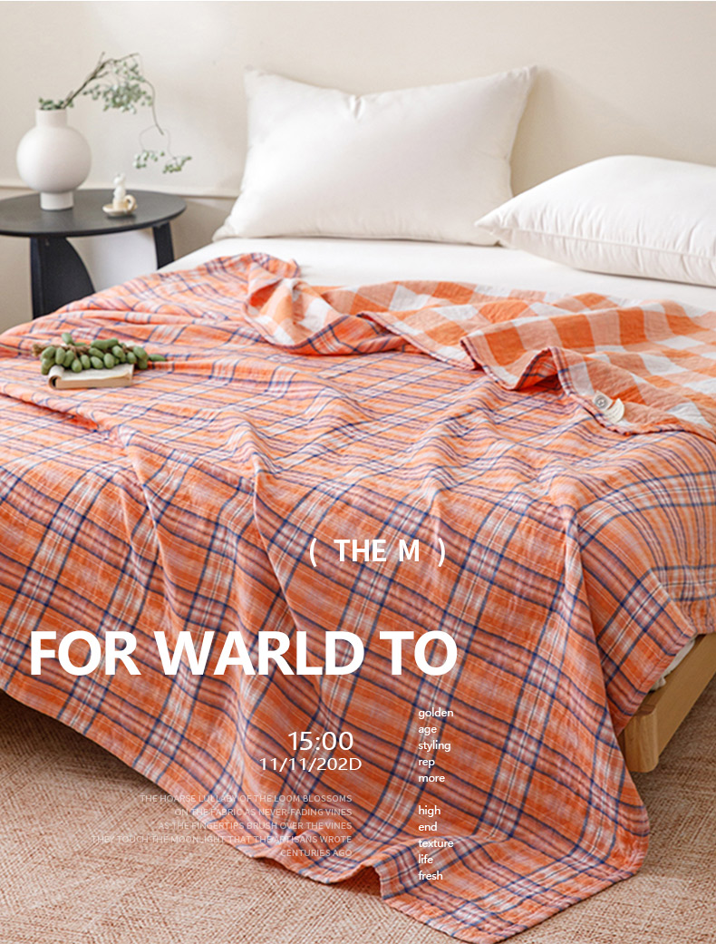 (总)悦然毛巾被 2026新款全棉纯棉三层水洗色织纱布毛巾被盖毯夏凉被空调被,繁花似锦,净色玫瑰,摩登,清格慢居灰,清格慢居蓝