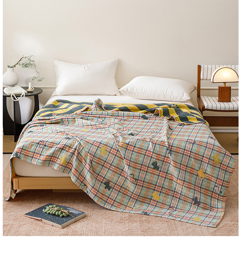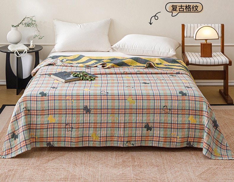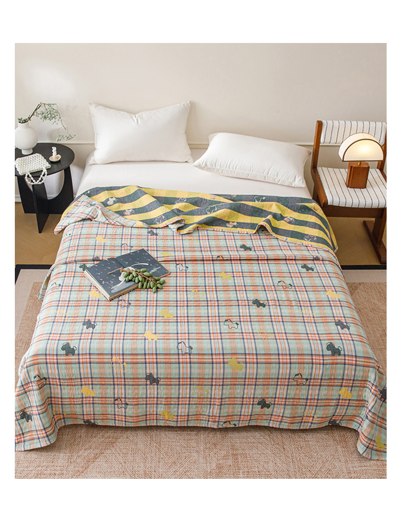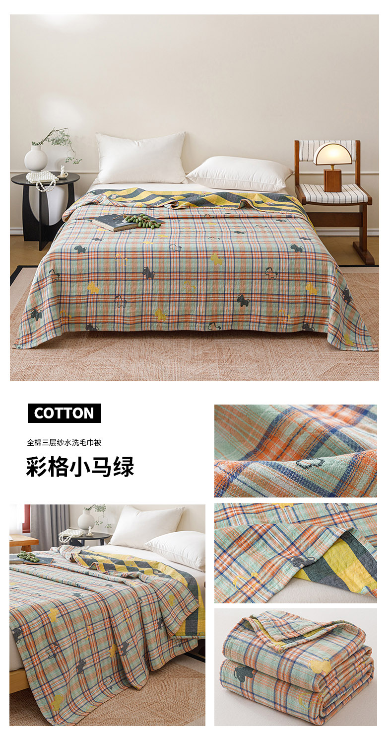 悦然毛巾被 2026春夏新款全棉纯棉三层纱水洗毛巾被夏被夏凉被空调被 彩格小马绿