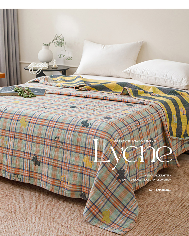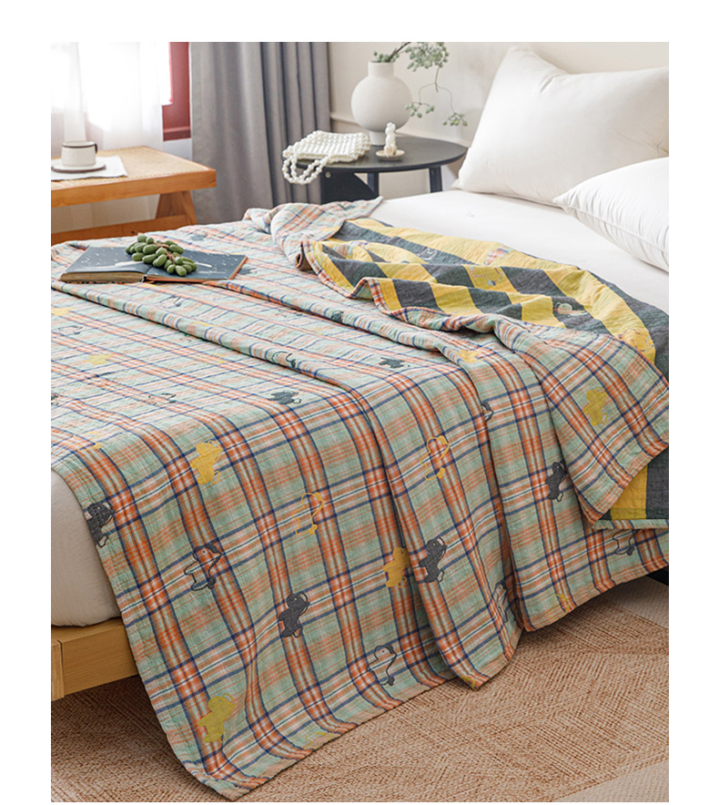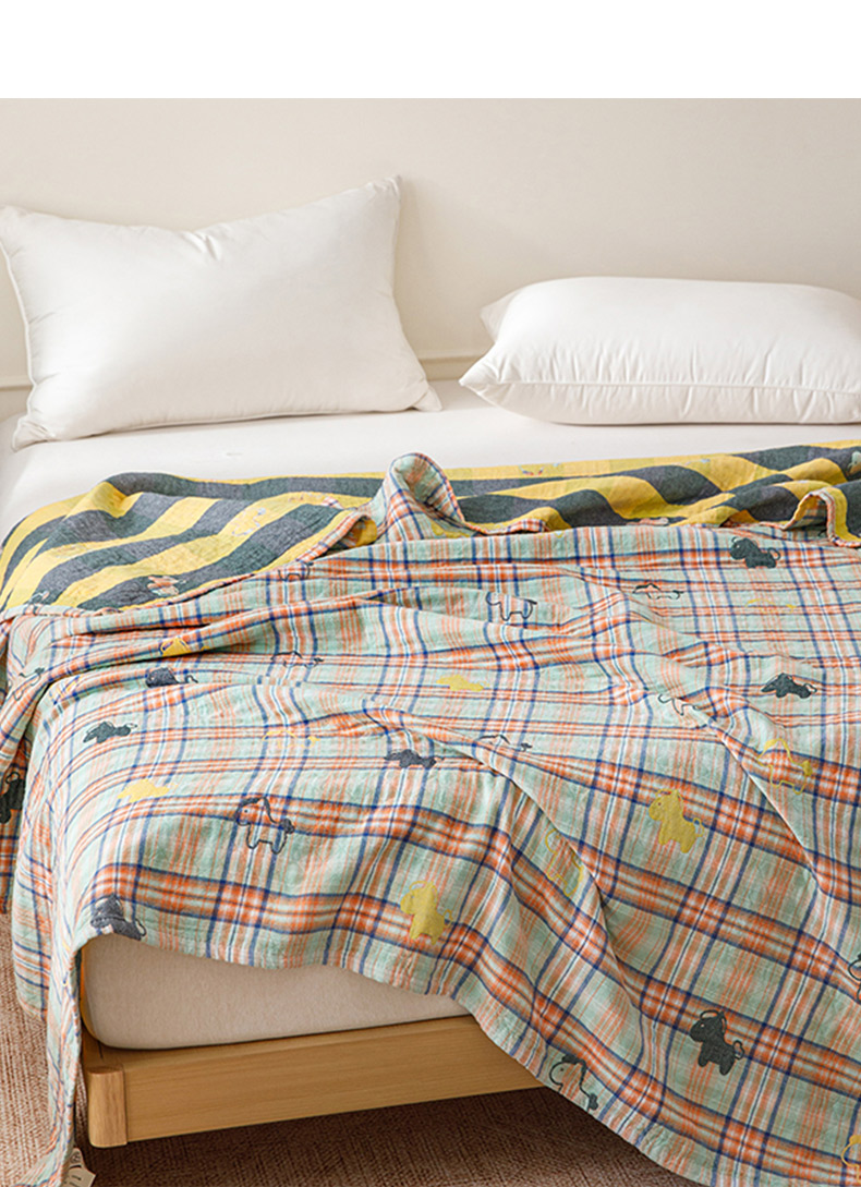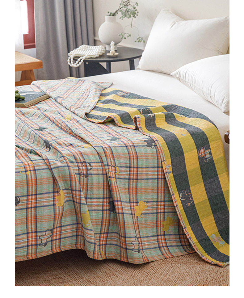悦然毛巾被 2026春夏新款全棉纯棉三层纱水洗毛巾被夏被夏凉被空调被 彩格小马绿