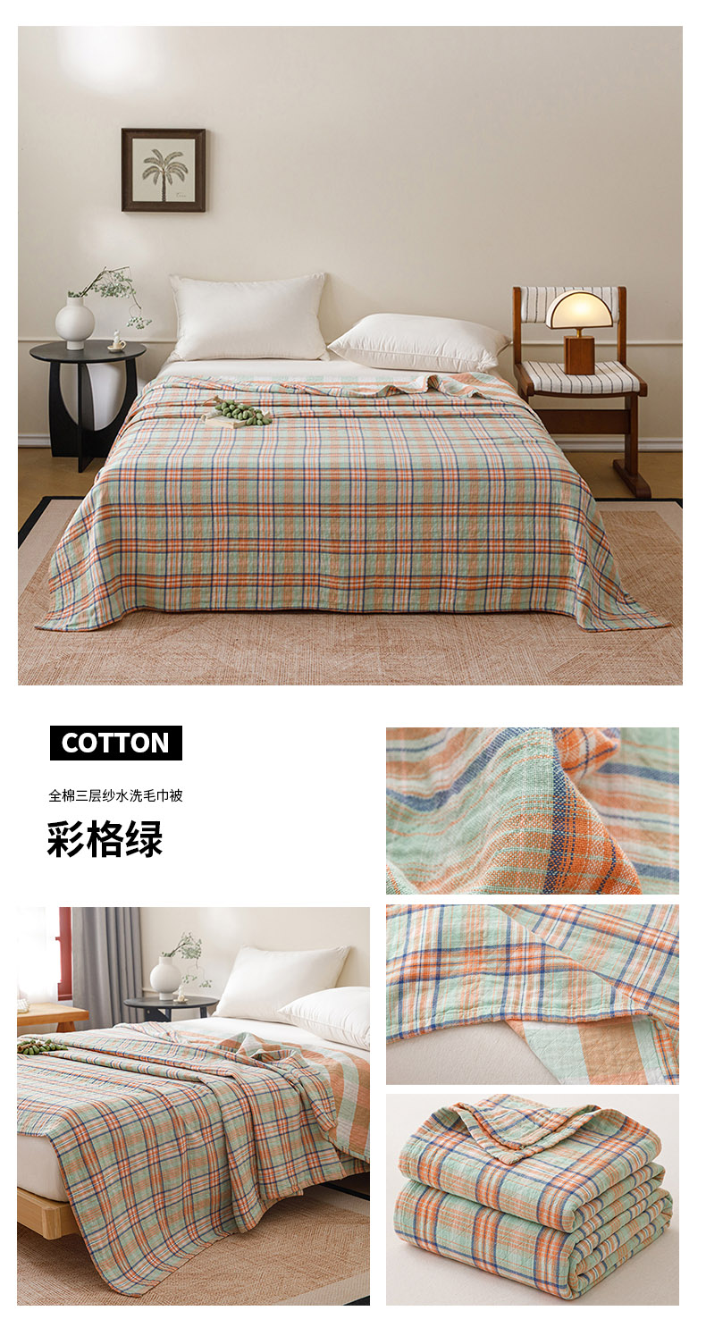 (总)悦然毛巾被 2026春夏新款全棉纯棉三层纱水洗毛巾被夏被夏凉被空调被,组合图仅供展示不可下单,彩格橙,彩格蓝,彩格绿,彩格小花橙,彩格小花蓝,彩格小花绿,彩格小马橙,彩格小马蓝,彩格小马绿
