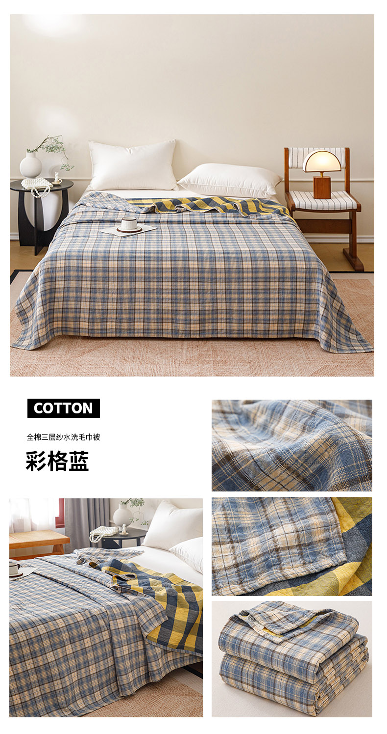 (总)悦然毛巾被 2026新款全棉纯棉三层水洗色织纱布毛巾被盖毯夏凉被空调被,繁花似锦,净色玫瑰,摩登,清格慢居灰,清格慢居蓝