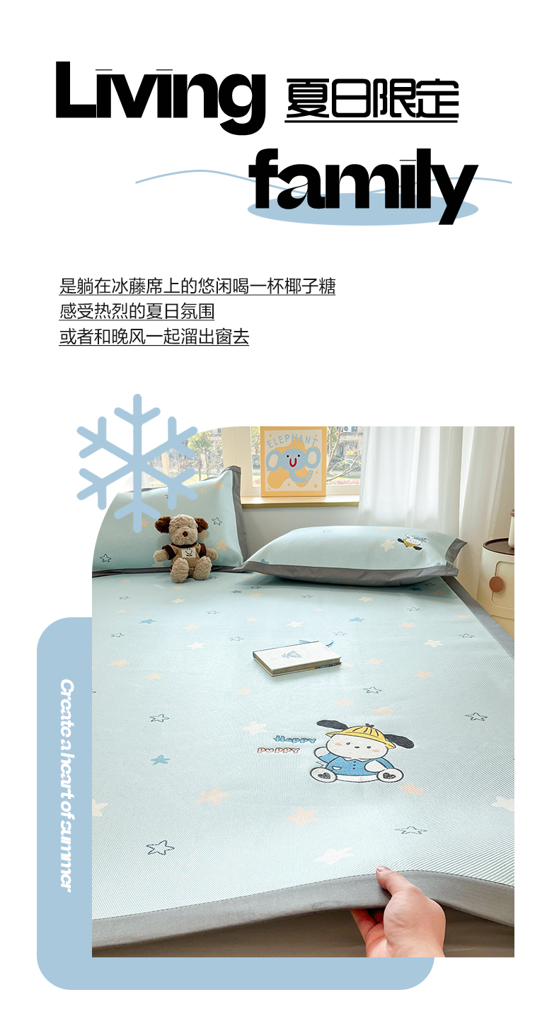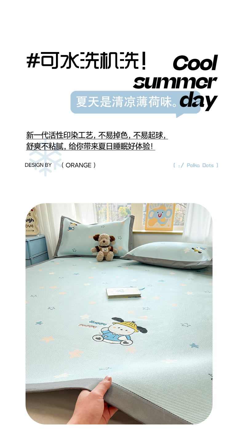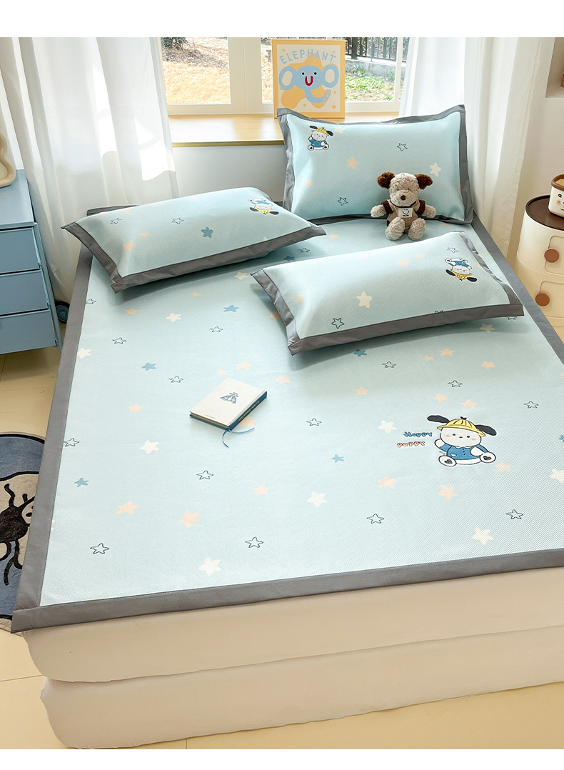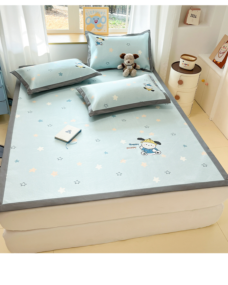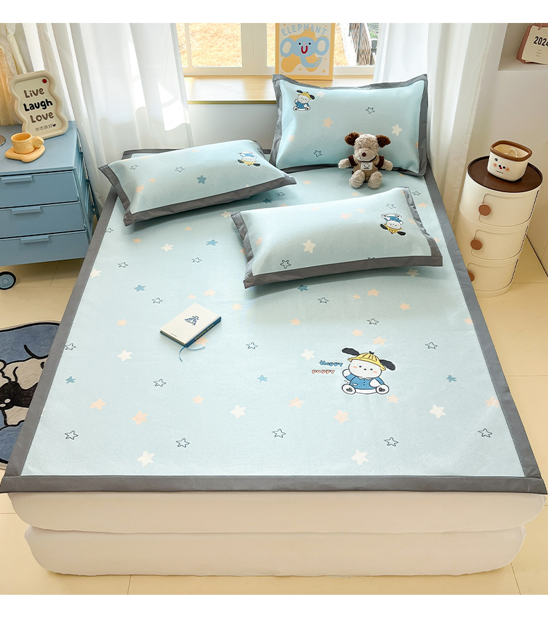 (总)雅居纺家纺 2026新款A类加厚三明治底绣花冰藤席学生宿舍床床单款凉席席子,冰淇淋萌狗,动感小狗,七彩虹,万事不南,小象家族,星星腊肠狗,幸运巴拉