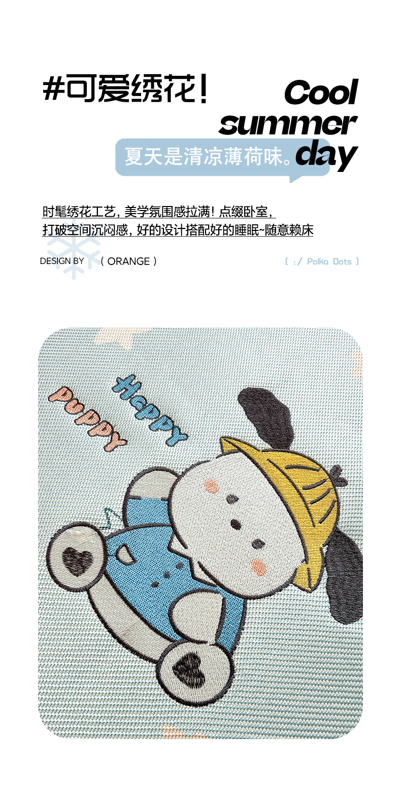 商品名称:雅居纺家纺 2026新款A类加厚三明治底绣花冰藤席床单款凉席席子 动感小狗