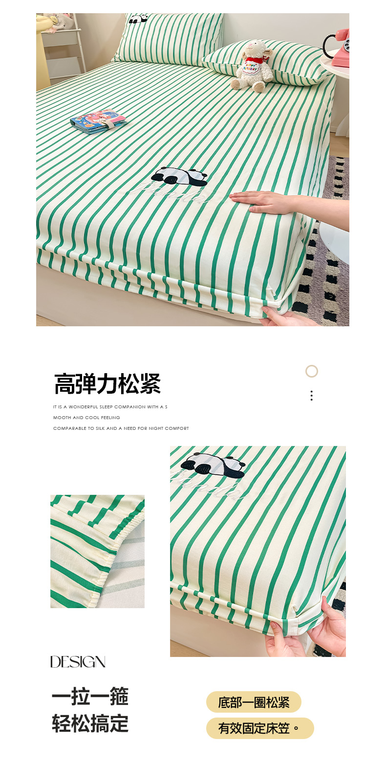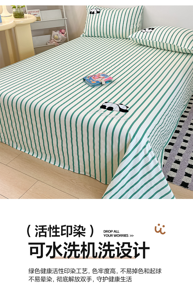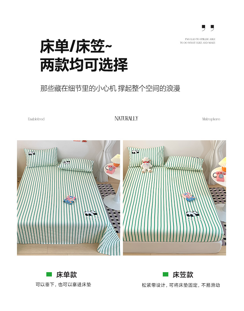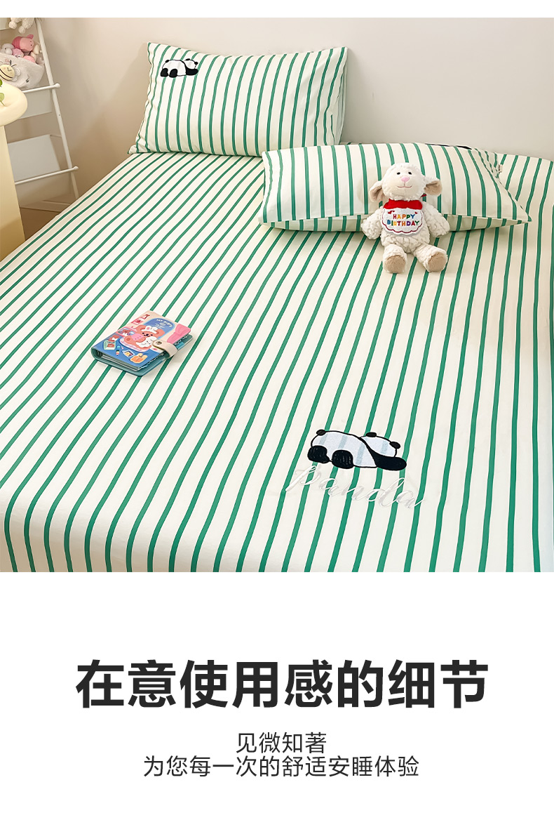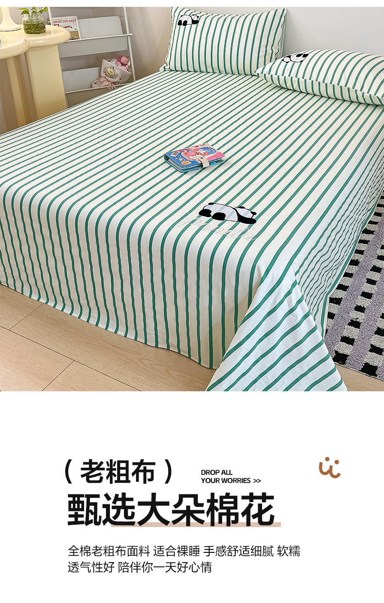 商品名称:雅居纺家纺 2026新款全棉绣花A类老粗布床笠单件床笠单品凉席席子 老粗布-萌仔熊猫