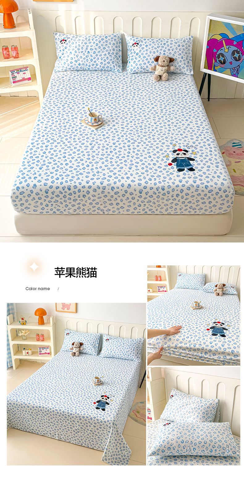 雅居纺家纺 2026新款全棉绣花A类老粗布床笠单件床笠单品凉席席子 老粗布-萌仔熊猫
