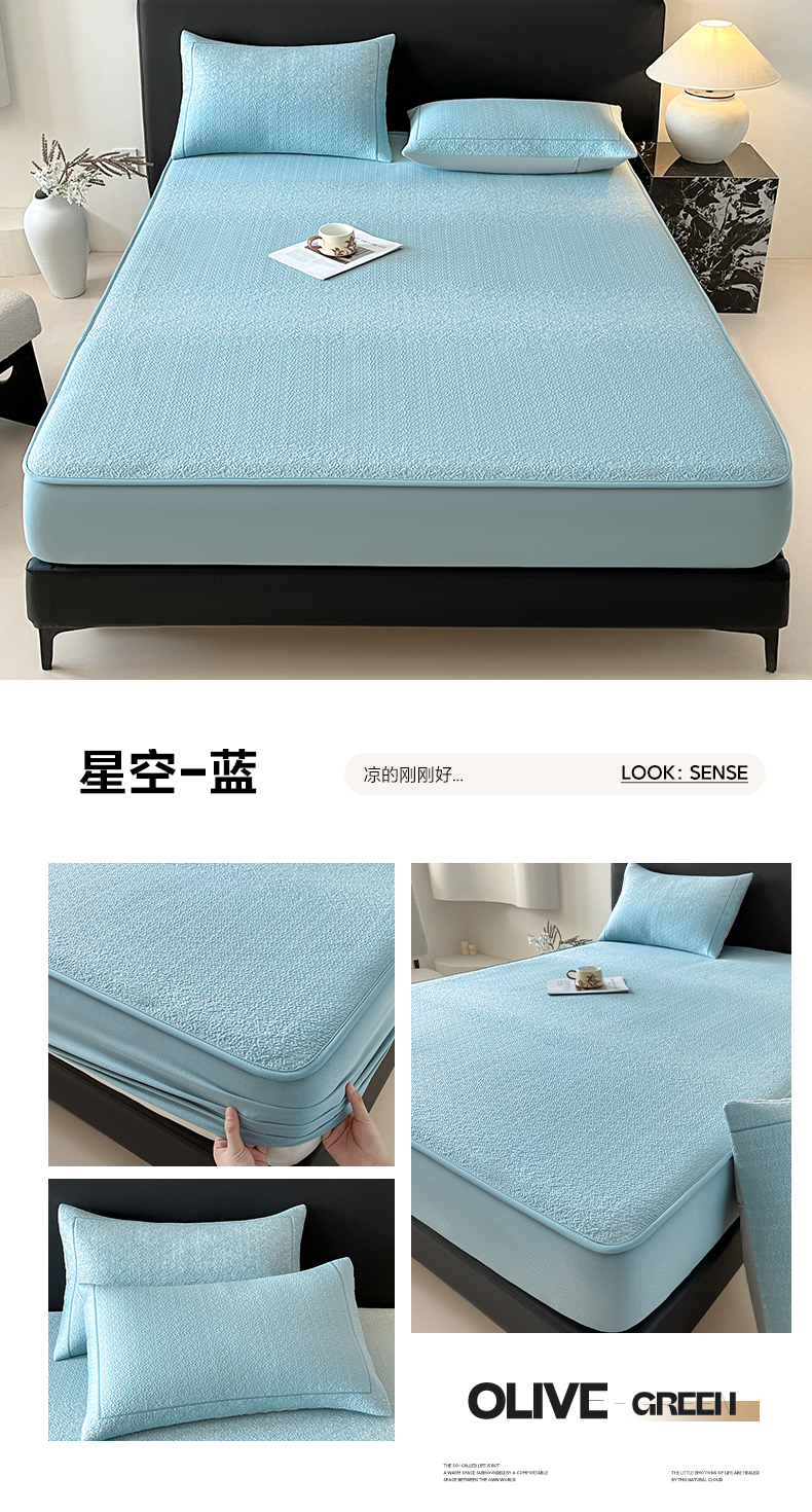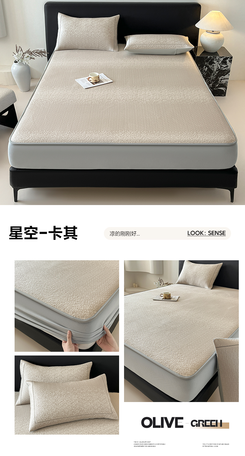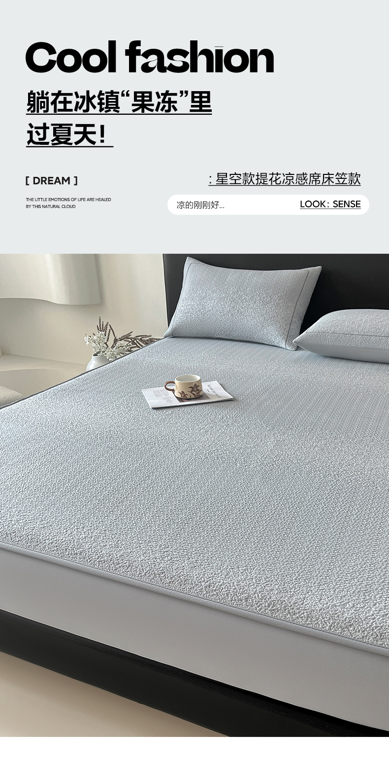 商品名称:雅居纺家纺 2026新款A类加厚三明治底星空提花凉感席床笠款凉席席子 星空-灰