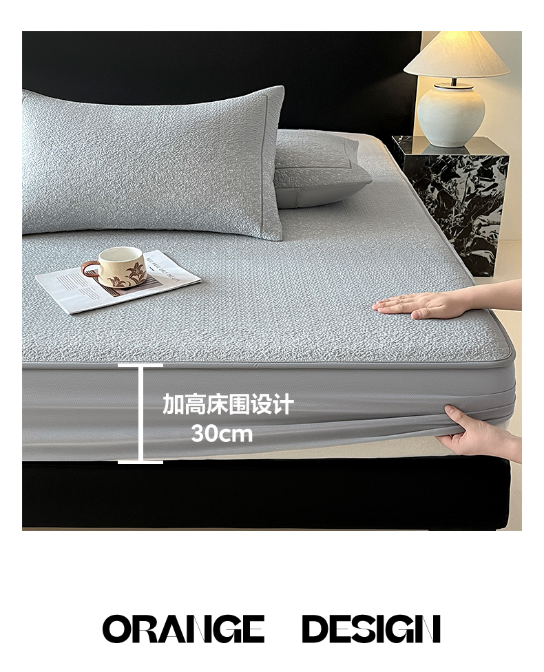 (总)雅居纺家纺 2022新款华夫格花边款四件套,梦幻蓝,橙色,纯白,米咖,浅粉,浅灰,优雅灰