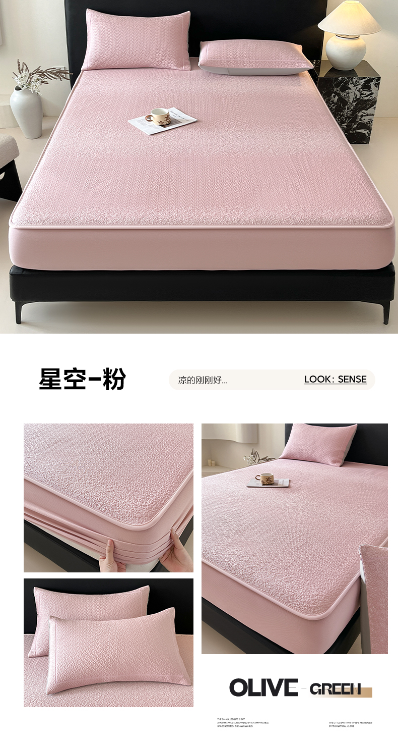 (总)雅居纺家纺 2026新款A类加厚三明治底提花小清新凉感席床笠款凉席席子,粉小兔,蝴蝶结猫咪,领结小猫,平安熊猫,山茶花,太空星球,晚安小狗,小熊熊,星星小熊,悠闲花园