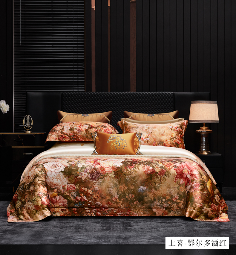 至爱今生 2026新款数码印花长绒棉四件套-上喜 上喜-鄂尔多酒红
