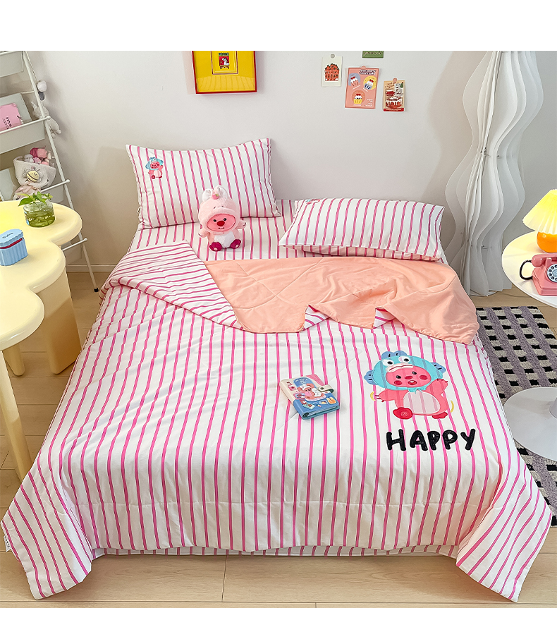 • 91家纺网 家纺一手货源 找家纺 雅居纺家纺 2026新款全棉绣花夏被夏凉被空调被可配同款老粗布四件套 夏被-小海狸粉