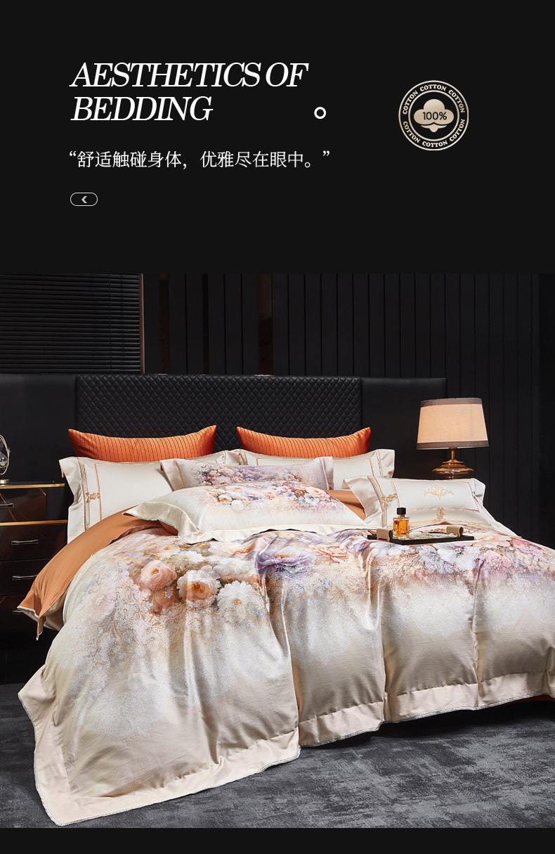 (总)至爱今生 2026新款数码印花长绒棉四件套-缦花礼赞,缦花礼赞