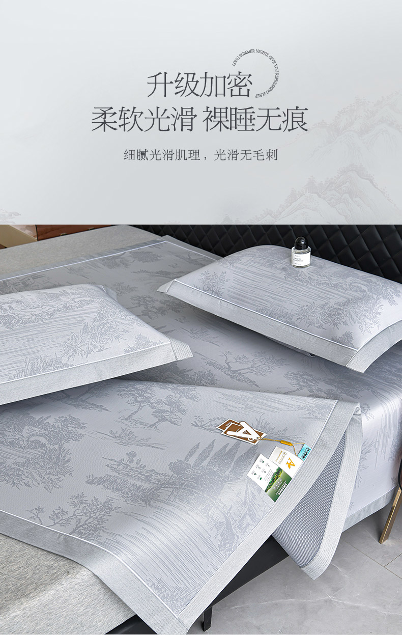 (总)2023新款超精密冰丝席-小斜纹系列-床笠款藤席凉席竹席,粉色,蓝色,绿色,银灰
