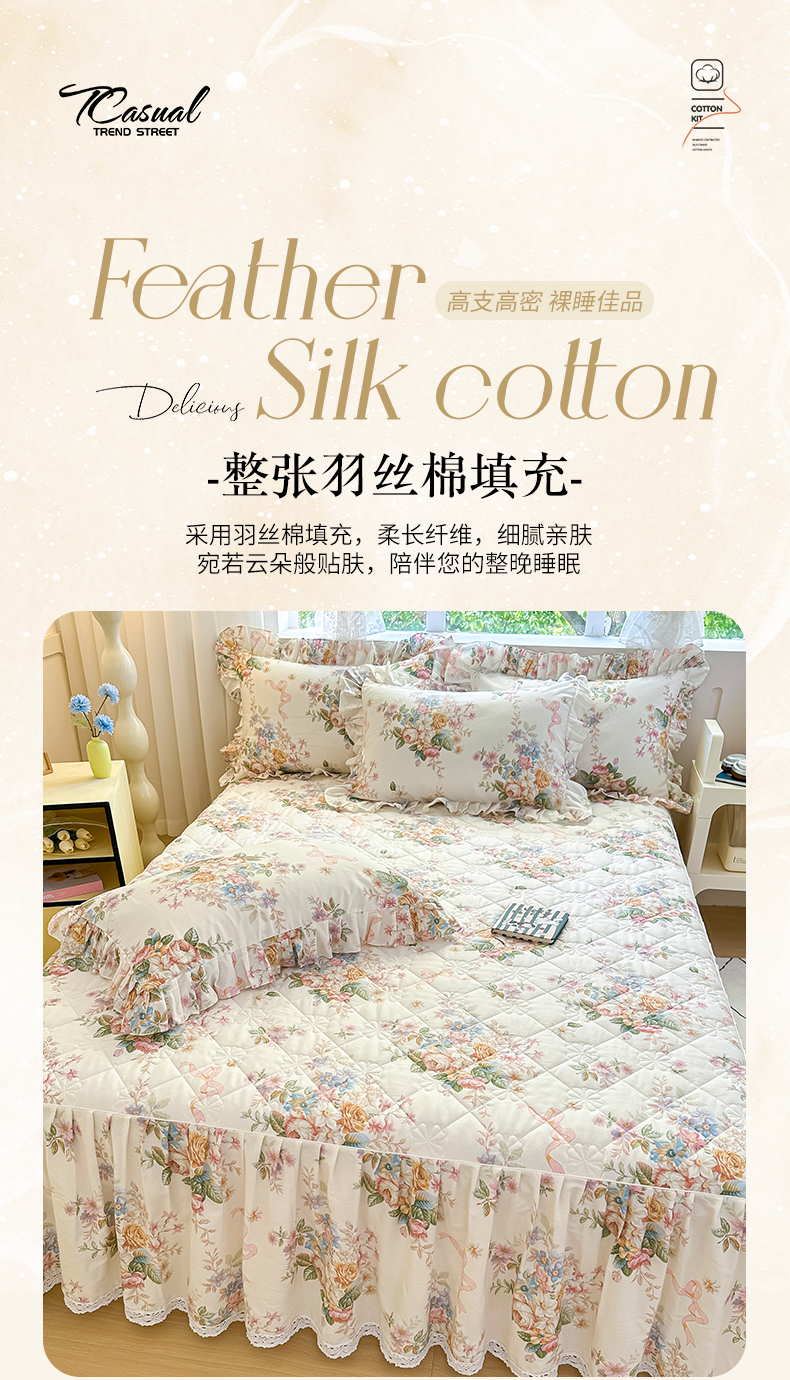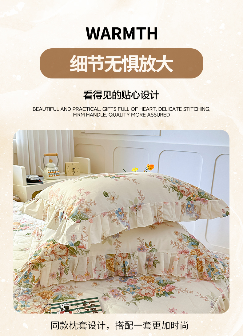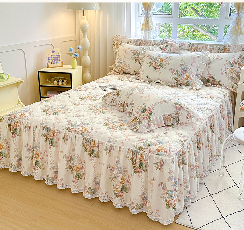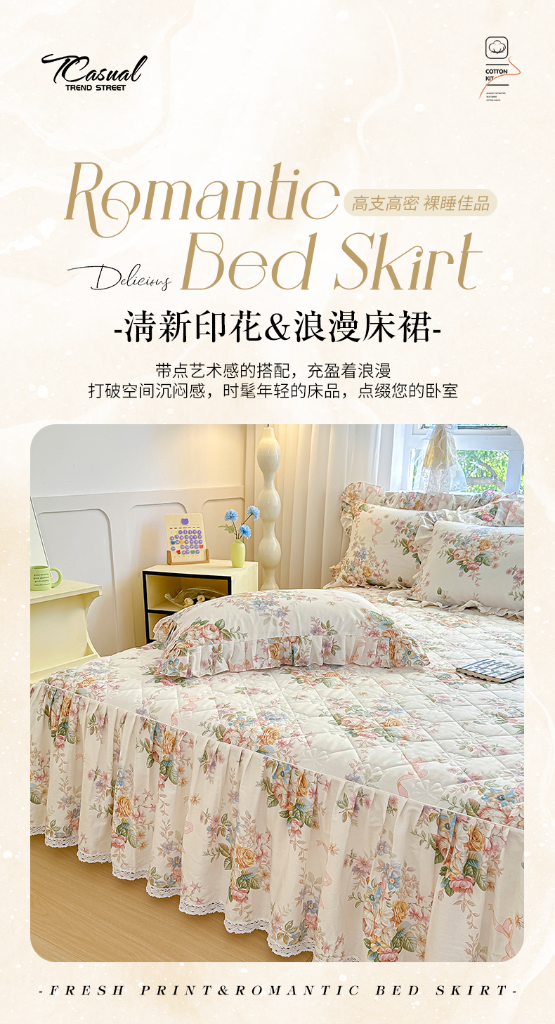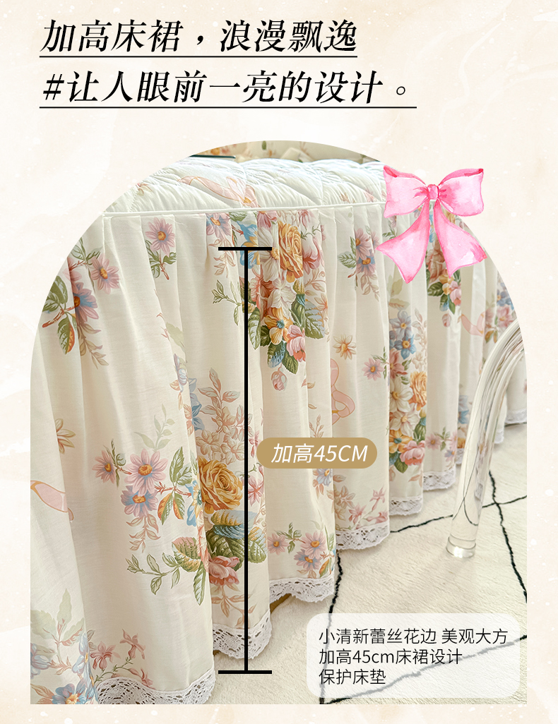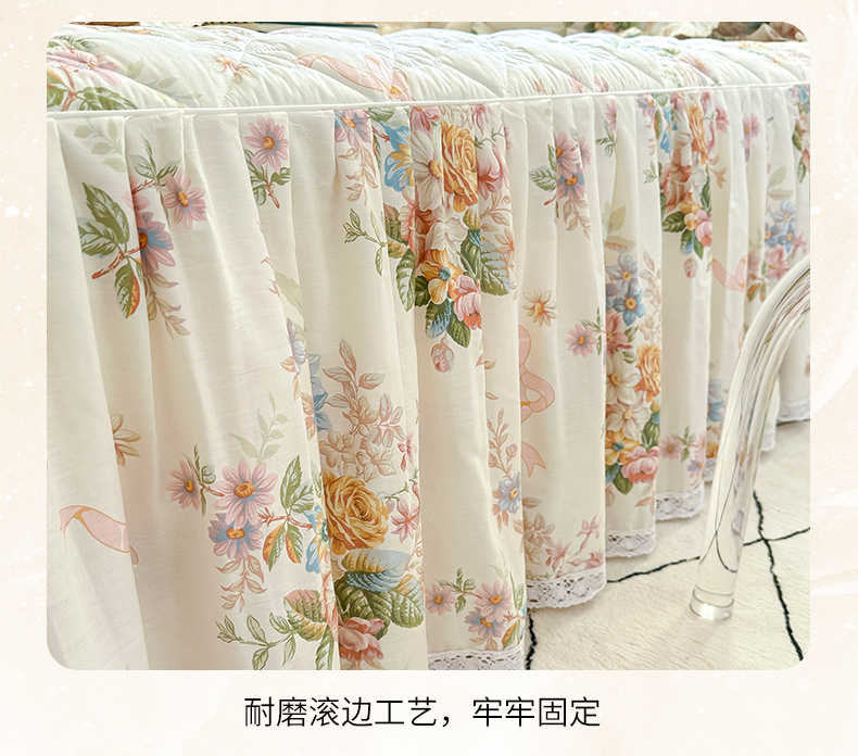 忘忧草 2026春夏新款全棉纯棉夹棉印花床裙床裙单件 花颜悦色