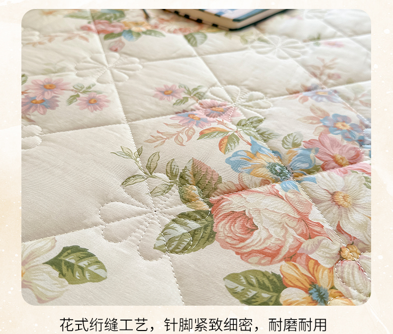 商品名称:忘忧草 2026春夏新款全棉纯棉夹棉印花床裙床裙单件 花颜悦色