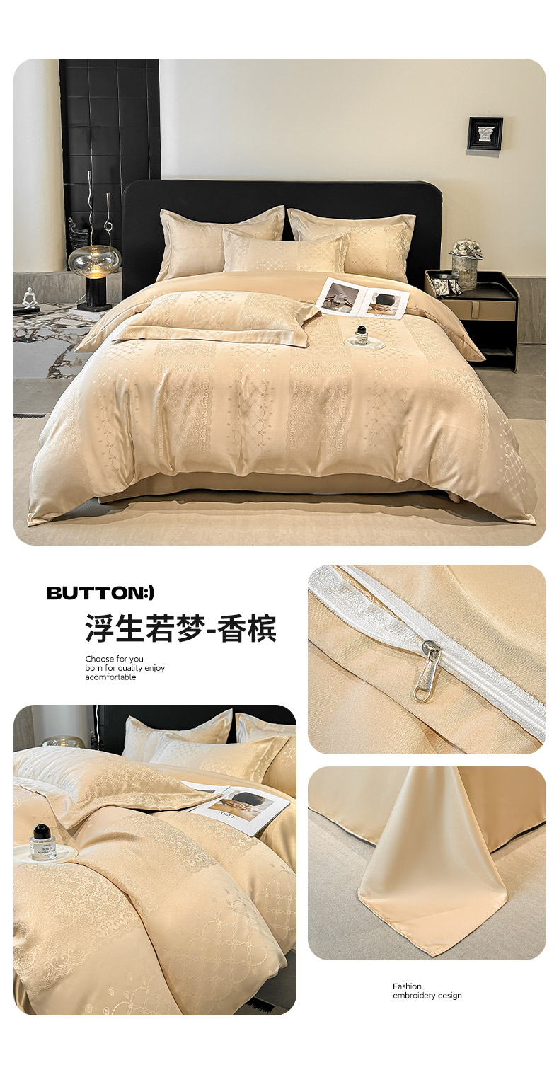 当前位置: 91家纺网 > 商品网购 > 床品套件 > 四件套 > 其它四件套 > 金阳光家纺 2026新款A类简奢款水洗真丝天丝亮丝提花四件套 梵希-灰