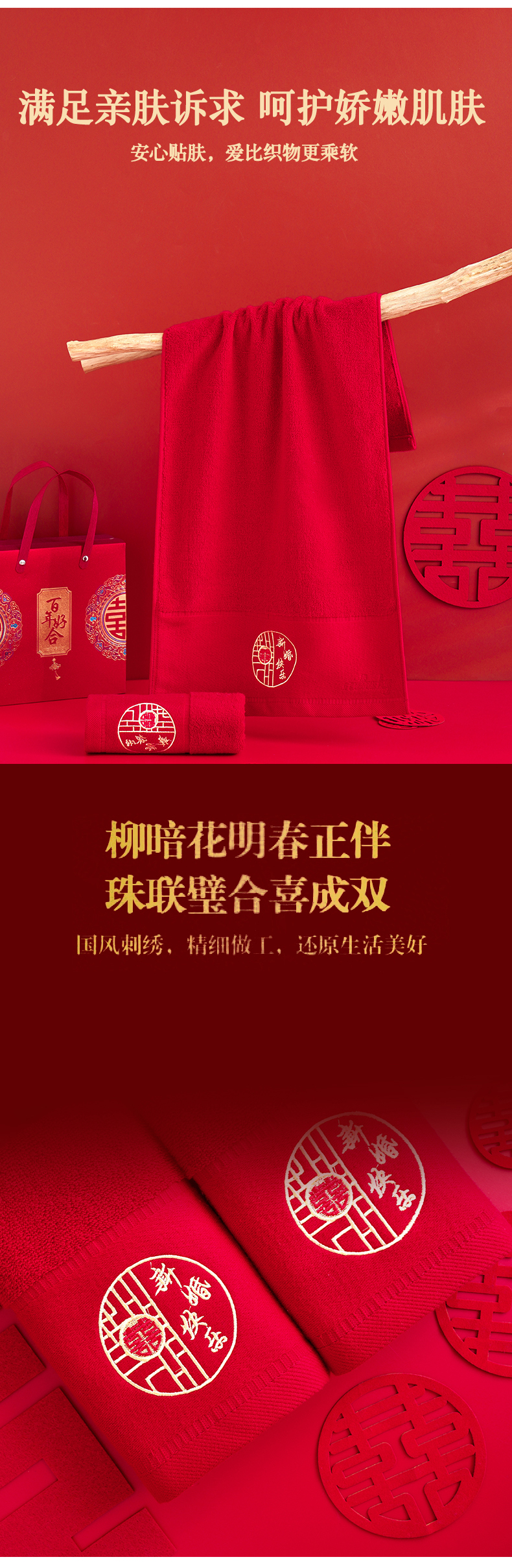 当前位置: 91家纺网 > 商品网购 > 居家日用 > 毛巾/浴巾/浴袍 > 毛巾 > 朴尔家纺-毛巾被 2026新款全棉纯棉红色系喜庆婚庆伴手礼新婚回礼绣花毛巾-场景二 组合图仅供展示不可下单 礼盒