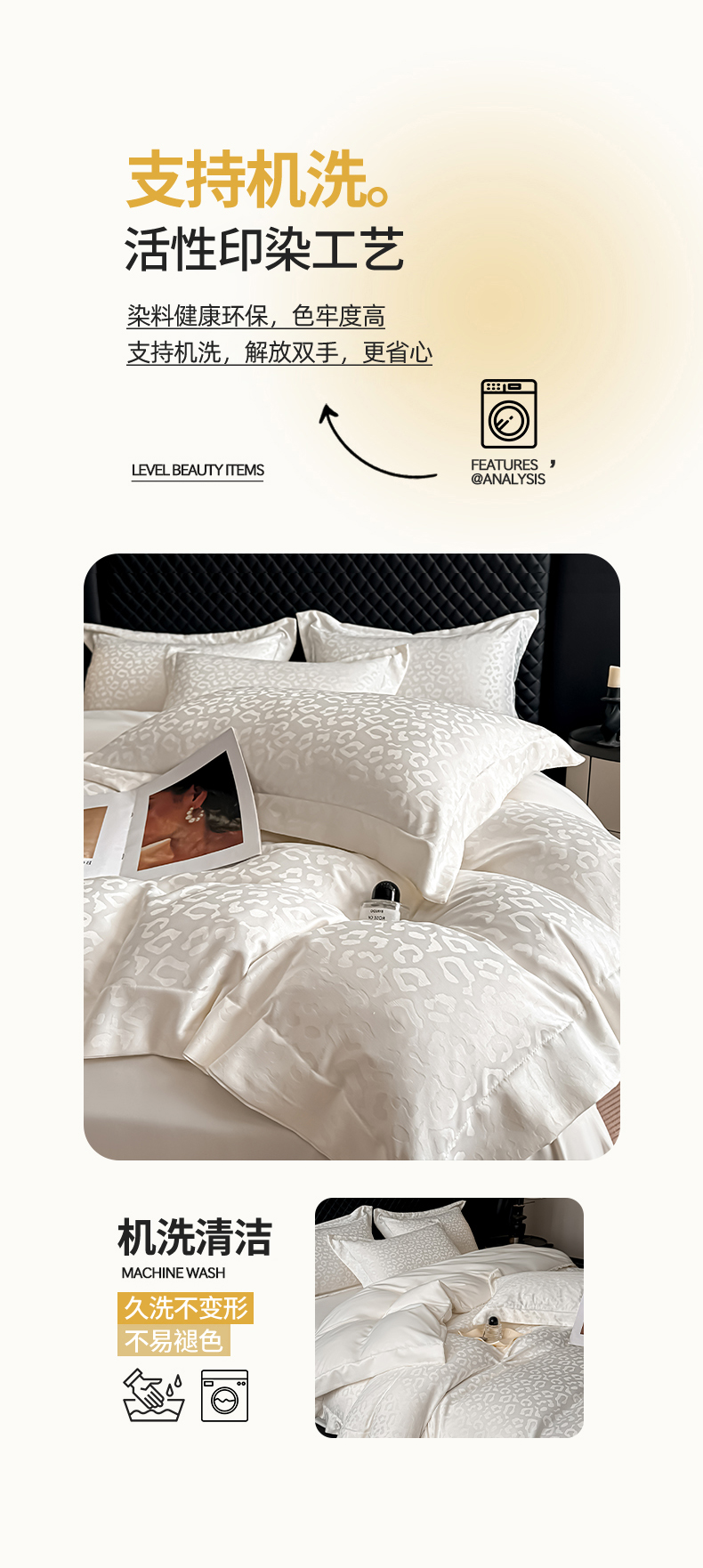 当前位置: 91家纺网 > 商品网购 > 床品套件 > 四件套 > 其它四件套 > 金阳光家纺 2026春夏新款A类水洗真丝天丝高奢提花豹纹四件套 豹纹-梦幻绿
