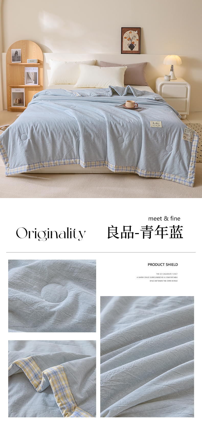 商品名称:(总)创优家纺 2026新款无印风21%大豆夏凉被大豆纤维手包边款夏凉被夏被空调被子被芯