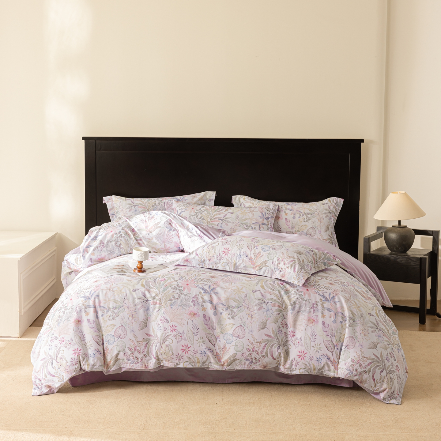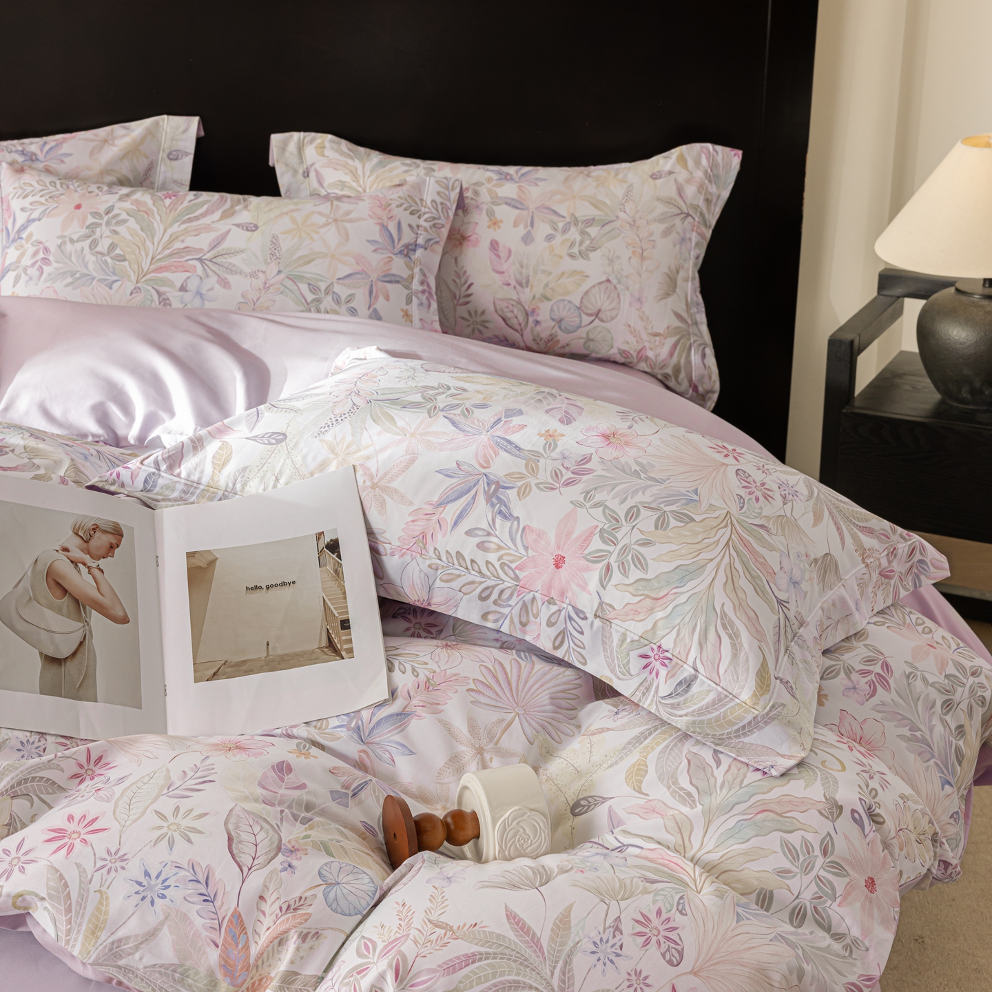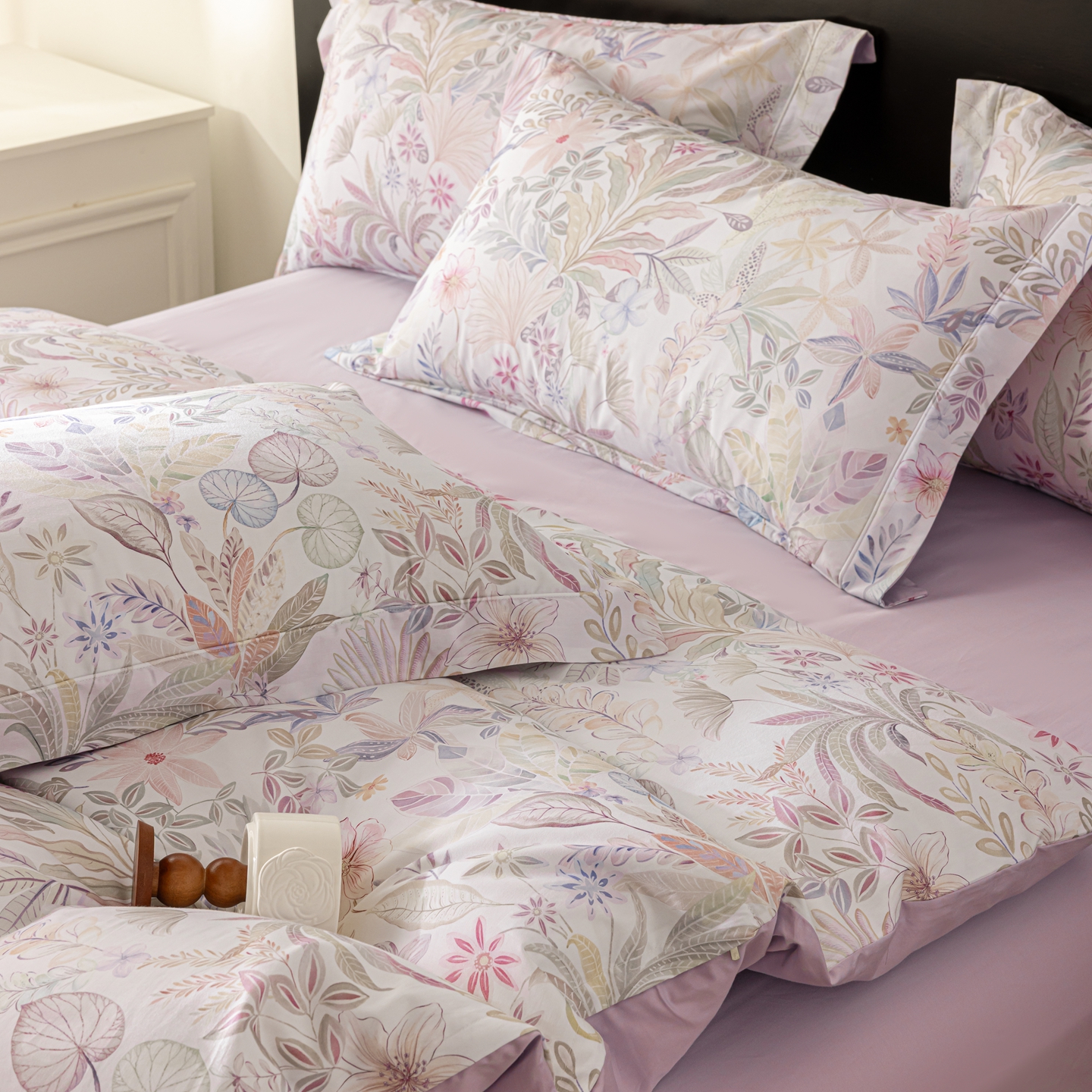 莱豫家纺 2026新款50s阿克苏长绒棉数码印花四件套 婉柠紫