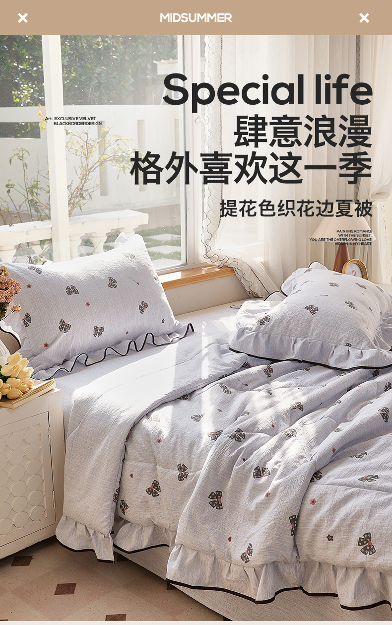 • 91家纺网 家纺一手货源 找家纺 (总)宝士康家纺 2026新款10A抗菌提花色织花边单夏被/夏被四件套/空调被,星语心结,灰枝谍影,蓝驹小趣,粉樱浅眠,粉屿蝶影,黑桃字符,灰调玫瑰,蓝樱,星梦小狗,雄心未了,樱花绘,紫穗