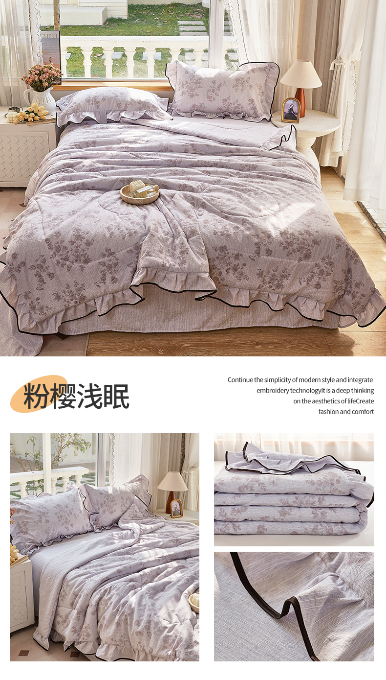• 91家纺网 家纺一手货源 找家纺 宝士康家纺 2026新款10A抗菌提花色织花边单夏被/夏被四件套/空调被 粉樱浅眠