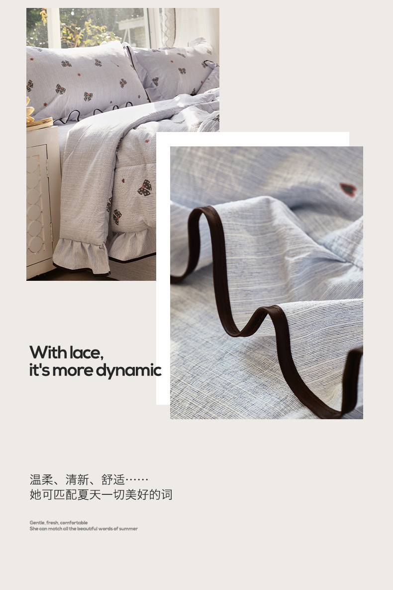 宝士康家纺 2026新款10A抗菌提花色织花边单夏被/夏被四件套/空调被 粉樱浅眠