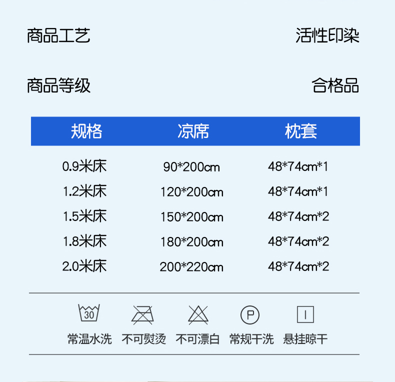 200x220cm单凉席+枕套一对 | ¥50.00 |