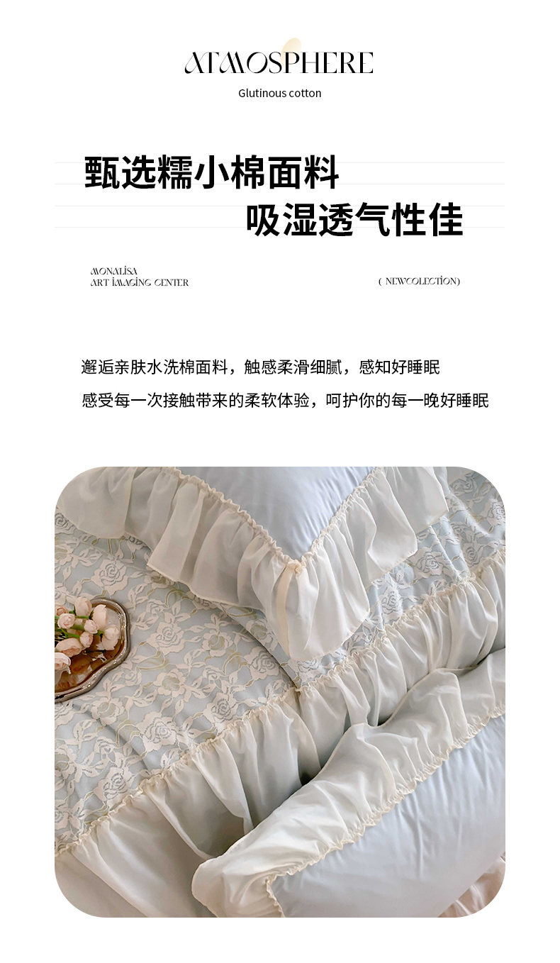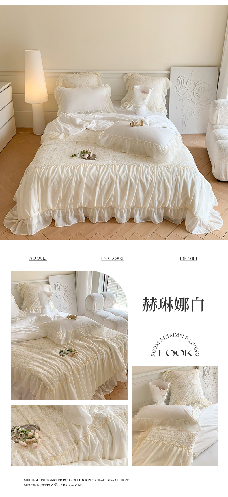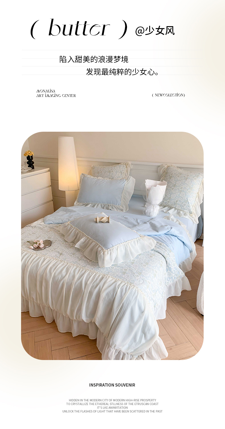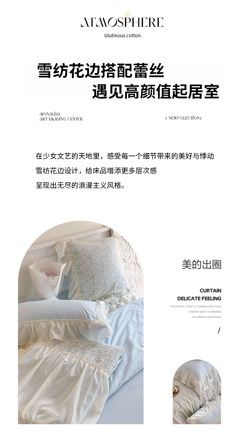 (总)吾欢心 2025新款小香风可可小姐系列花边四件套,可可奶茶绿,可可奶昔粉,可可柠檬黄,可可温柔紫,可可樱桃粉