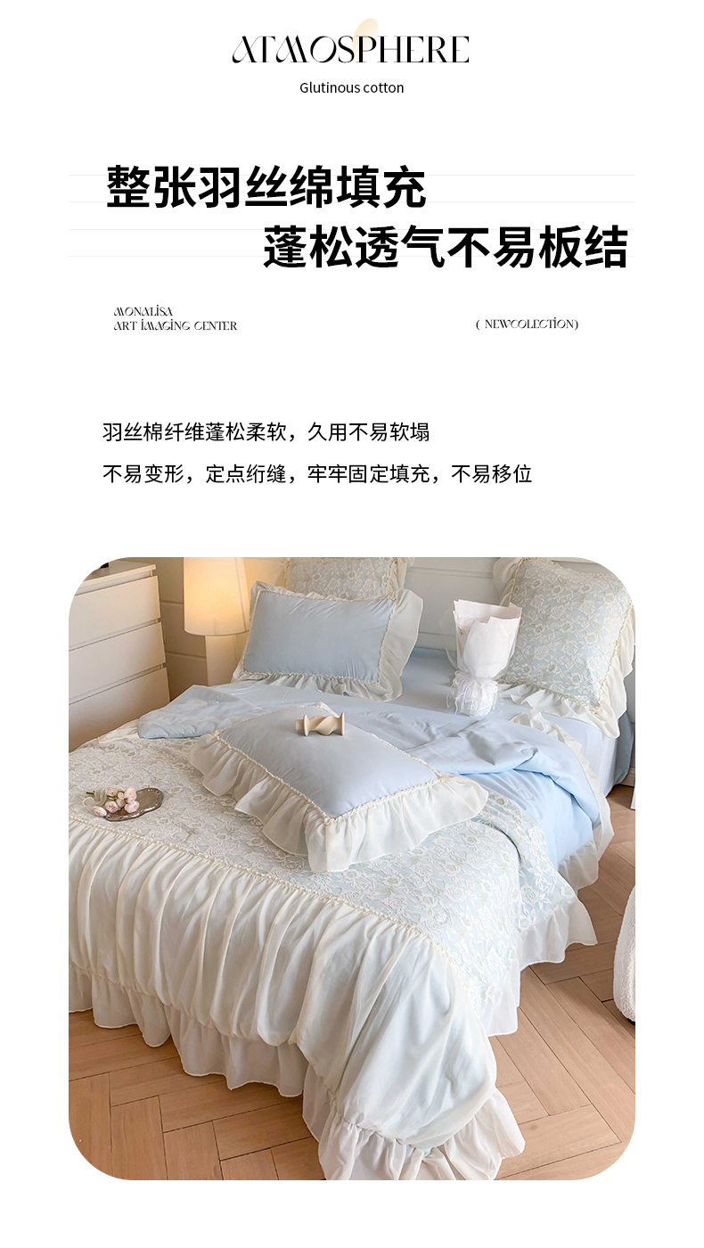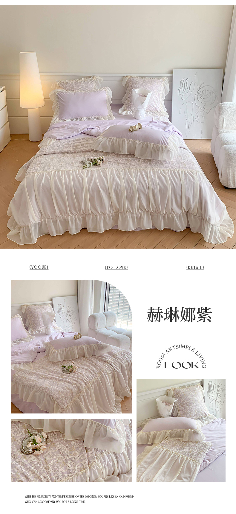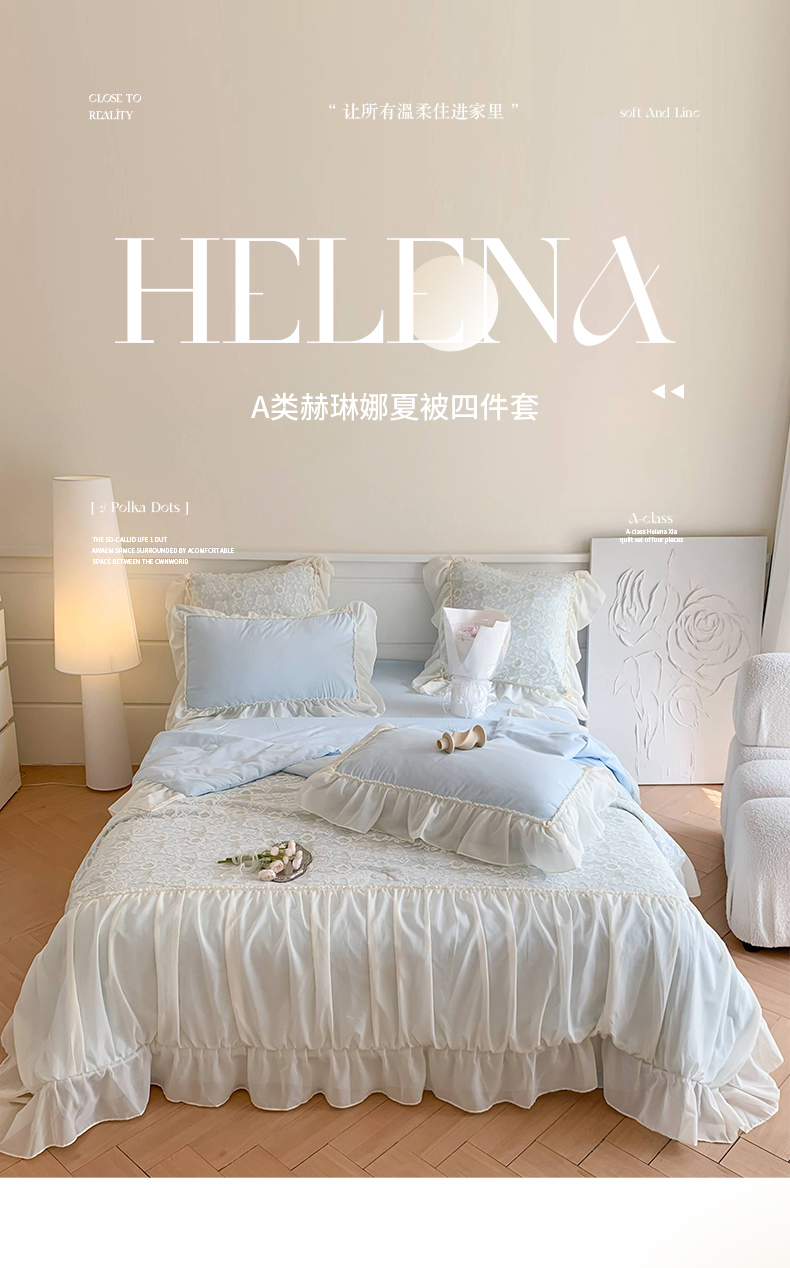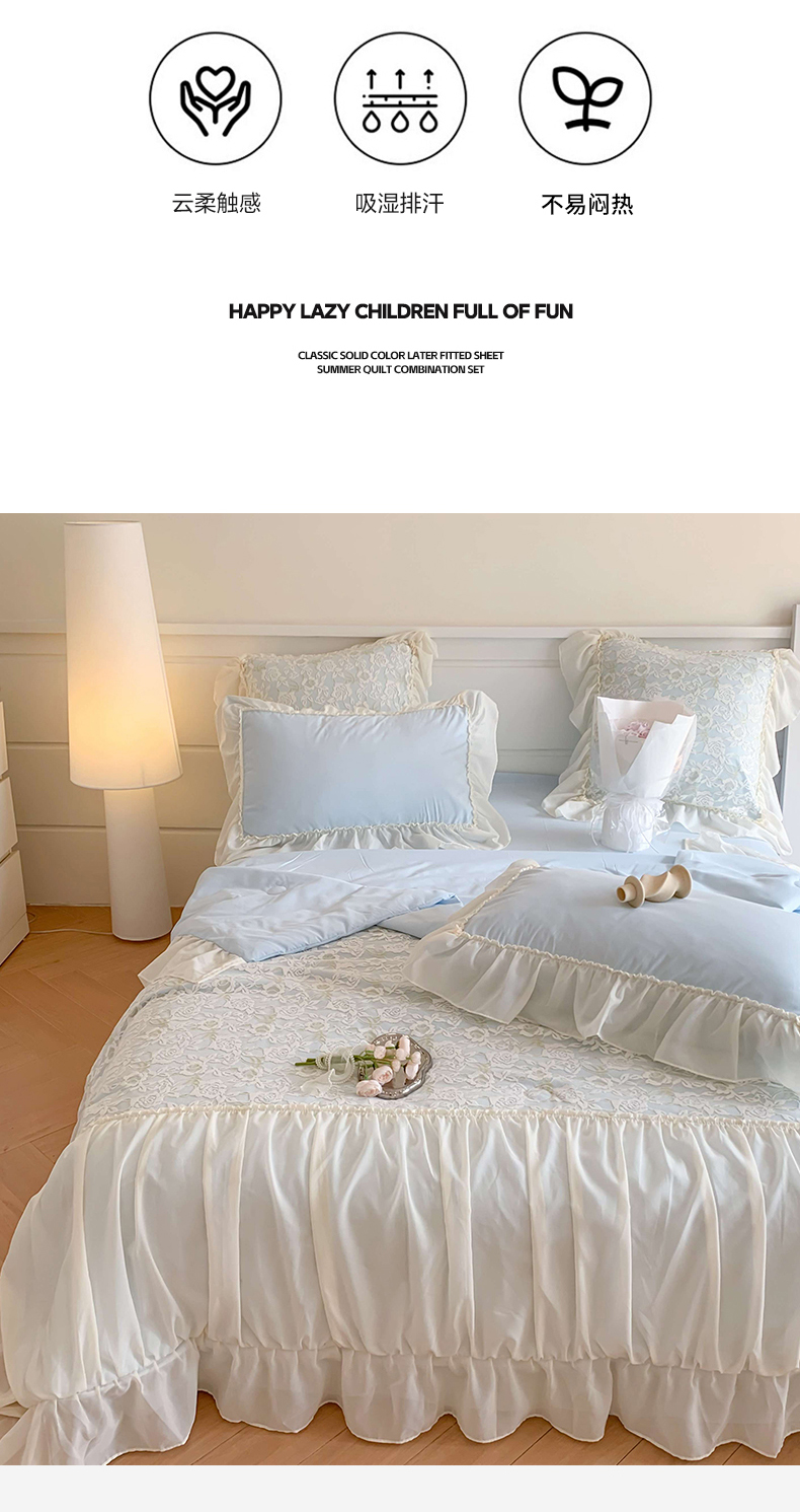 (总)吾欢心 2026新款A类法式花边爱丽莎床盖款夏被四件套,爱丽莎粉,爱丽莎白,爱丽莎黄,爱丽莎蓝,爱丽莎绿,爱丽莎紫