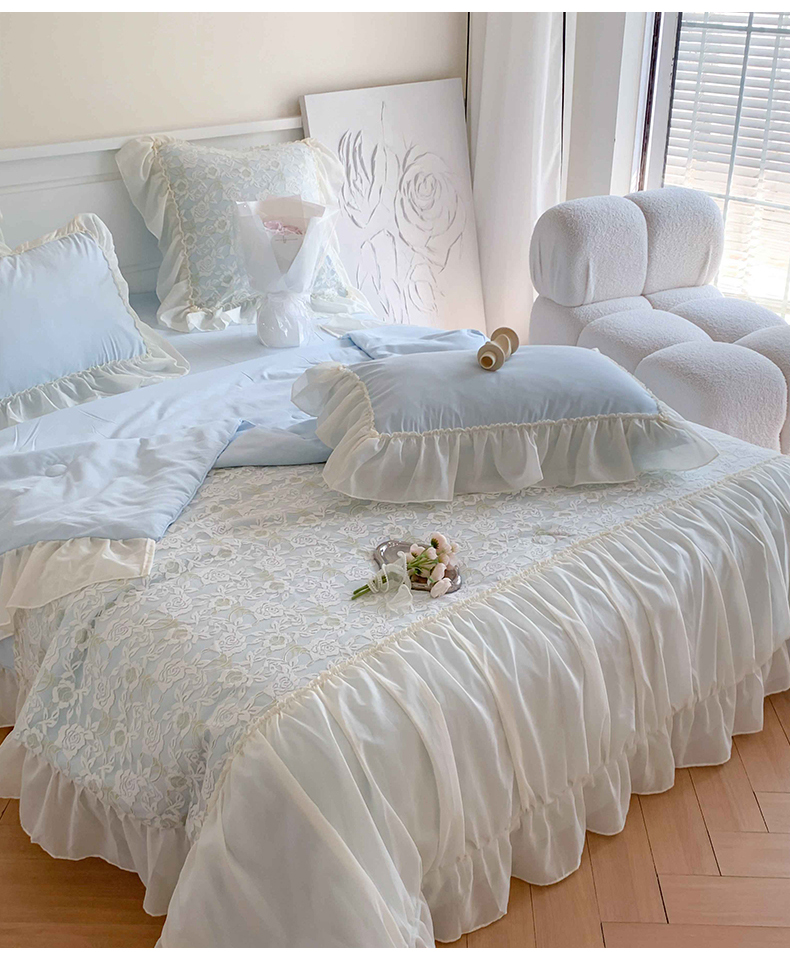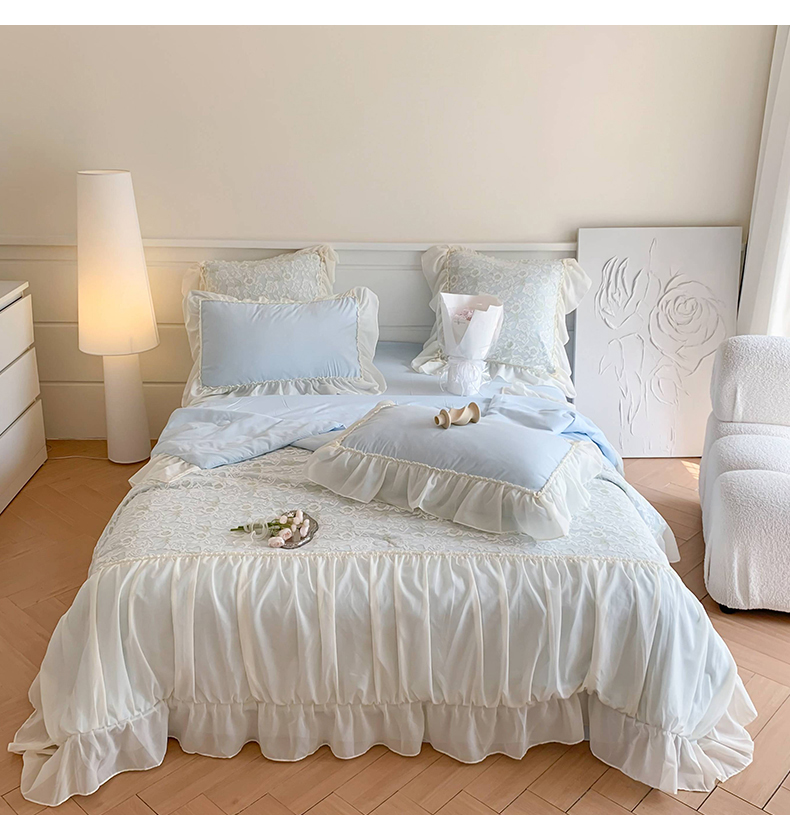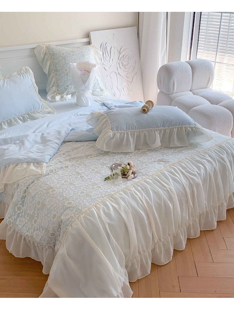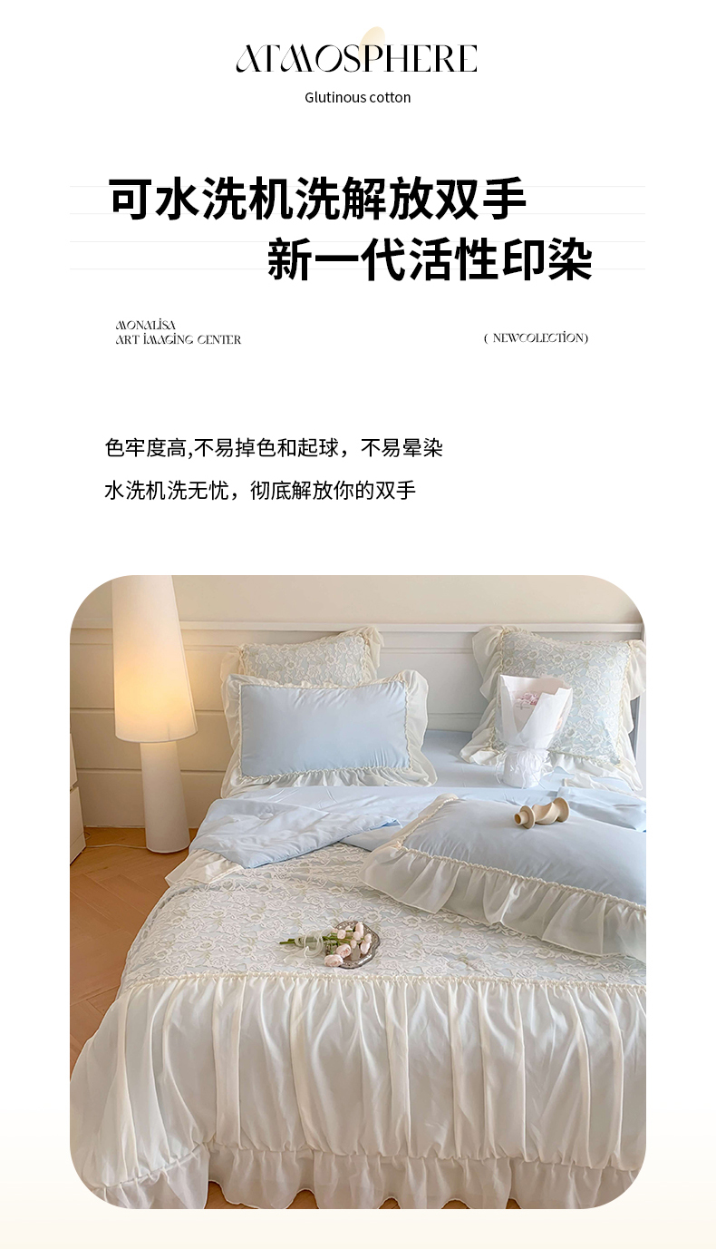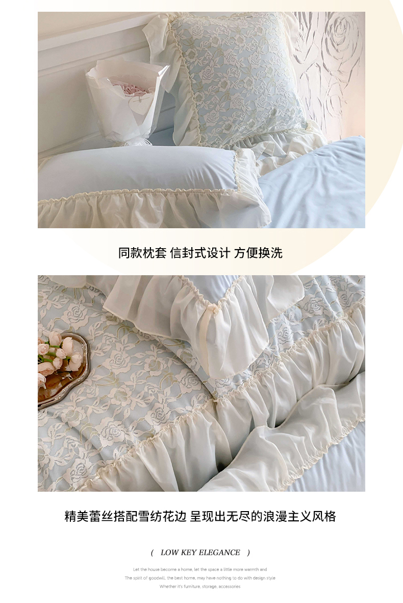 (总)吾欢心 2026新款A类法式花边爱丽莎床盖款夏被四件套,爱丽莎粉,爱丽莎白,爱丽莎黄,爱丽莎蓝,爱丽莎绿,爱丽莎紫