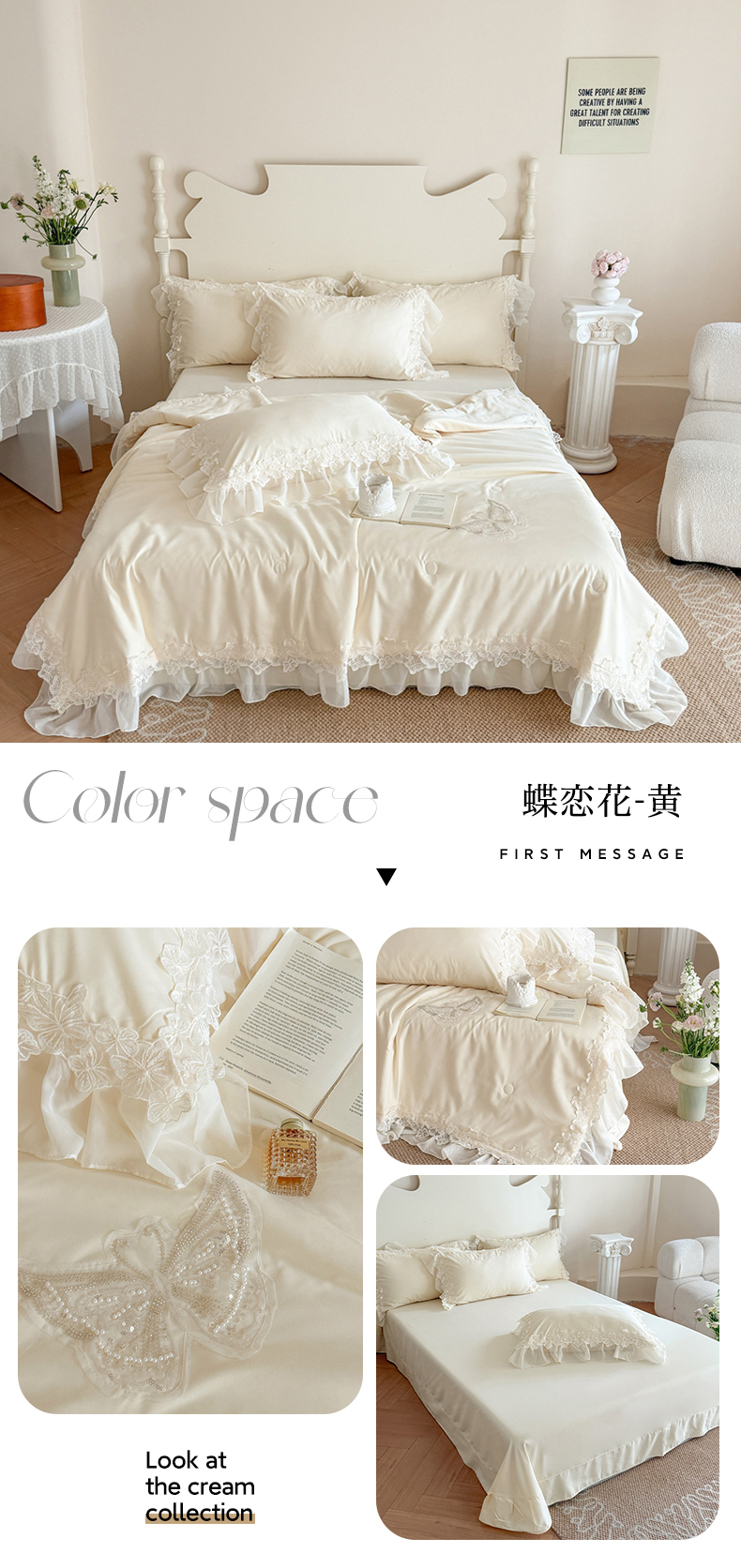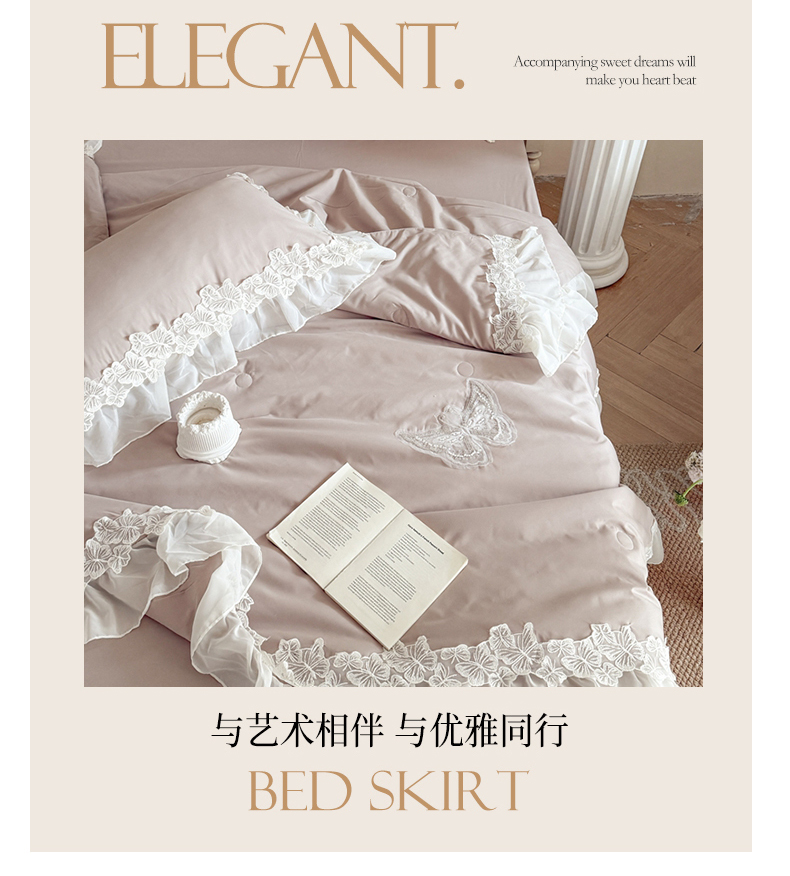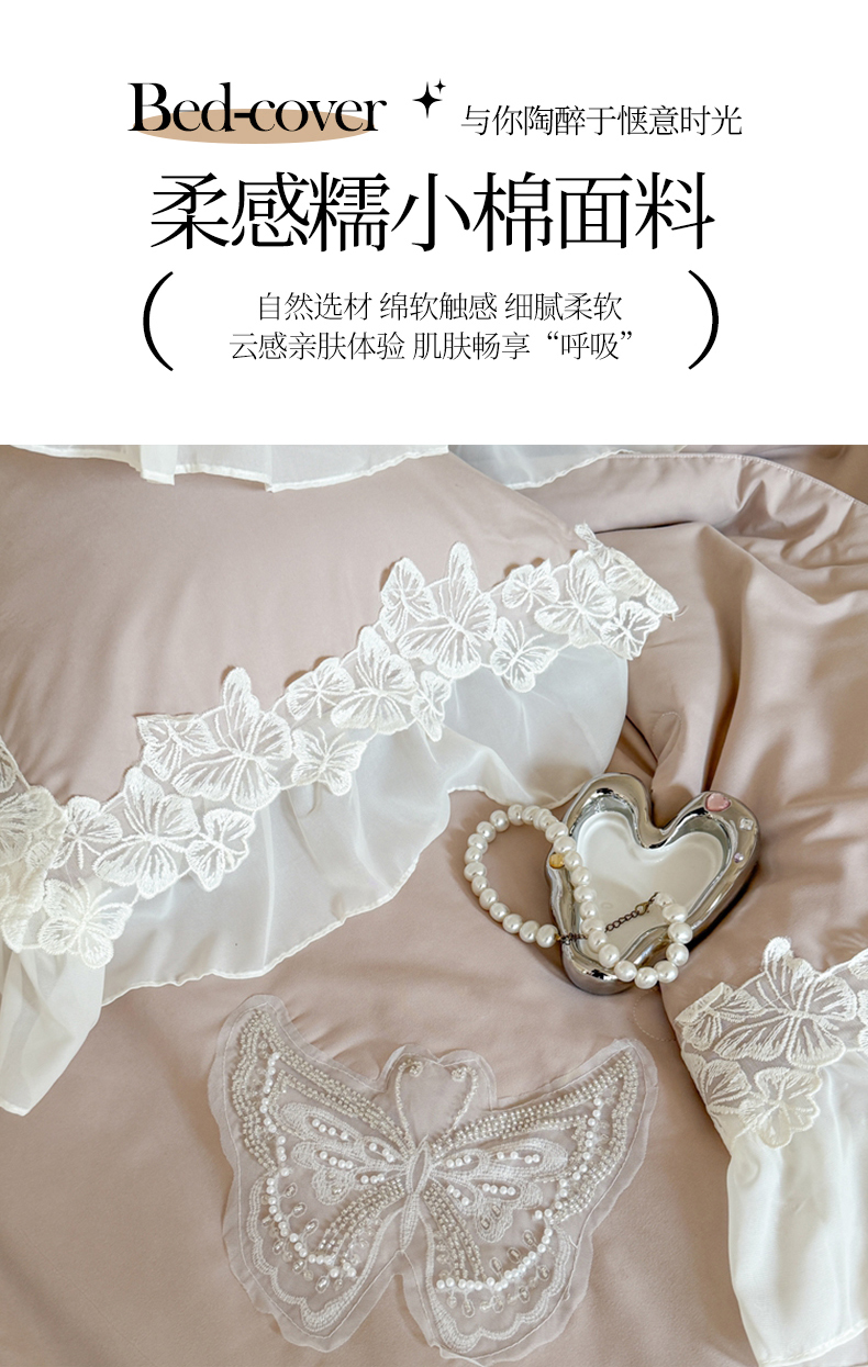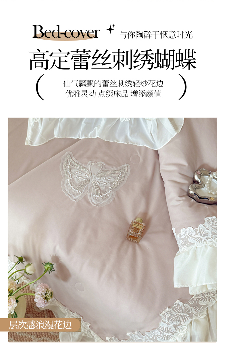 (总)吾欢心 2025新款糯小棉立体蝴蝶花边四件套-蝶恋花系列,蝶恋花白,蝶恋花粉,蝶恋花黄,蝶恋花咖,蝶恋花蓝,蝶恋花绿,蝶恋花紫