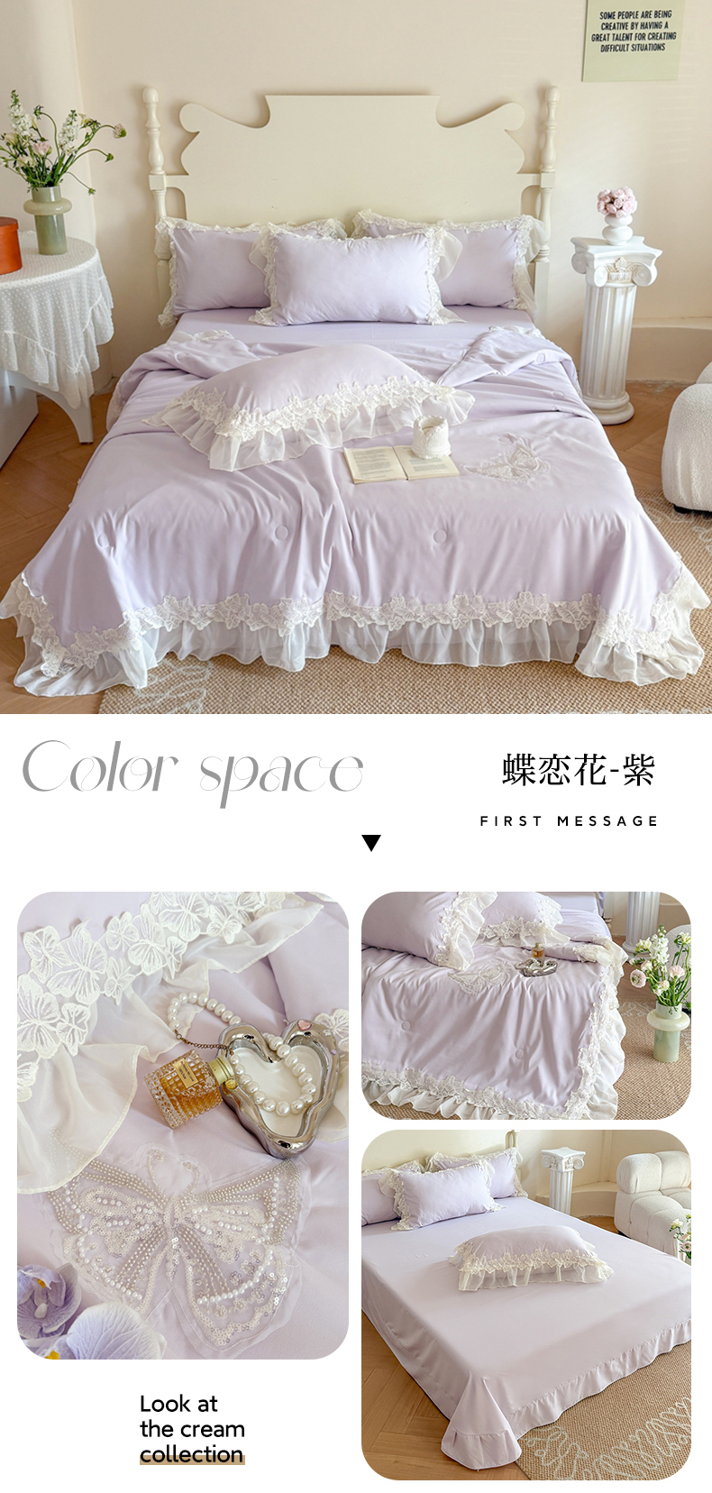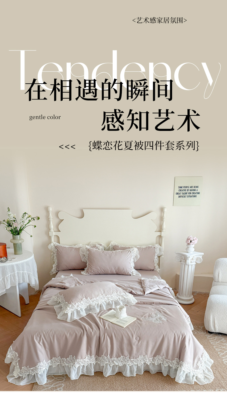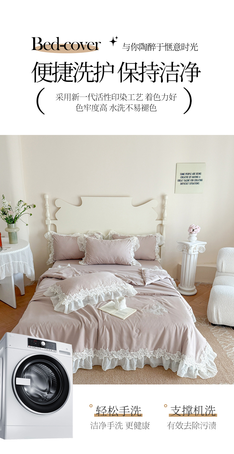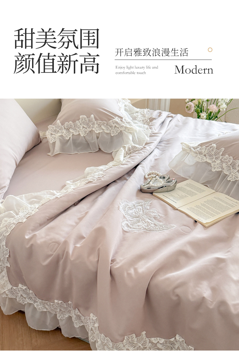 (总)吾欢心 2026新款A类法式花边爱丽莎床盖款夏被四件套,爱丽莎粉,爱丽莎白,爱丽莎黄,爱丽莎蓝,爱丽莎绿,爱丽莎紫