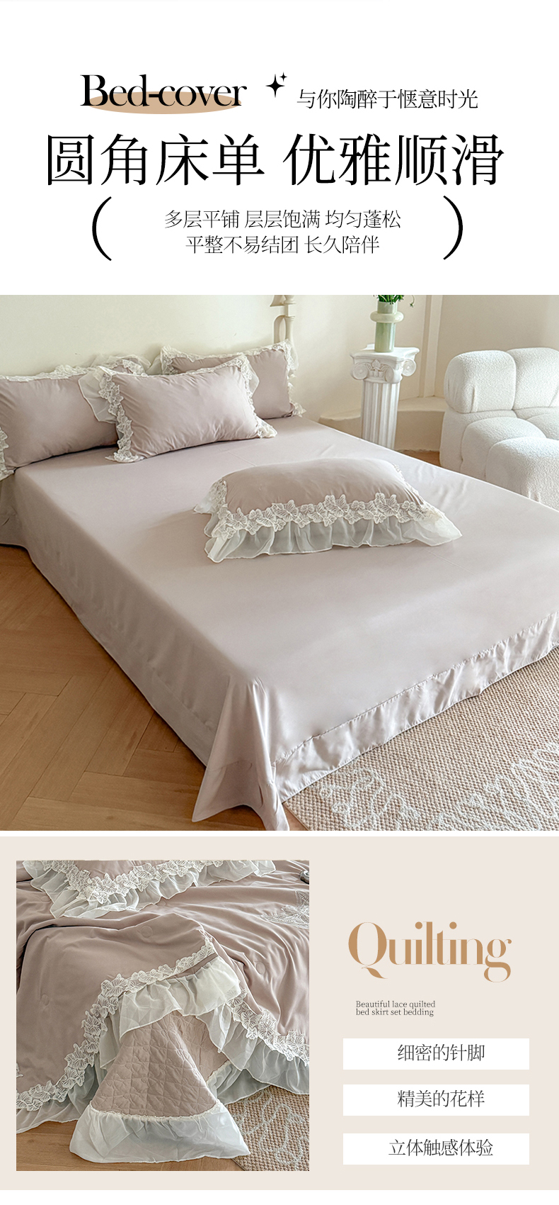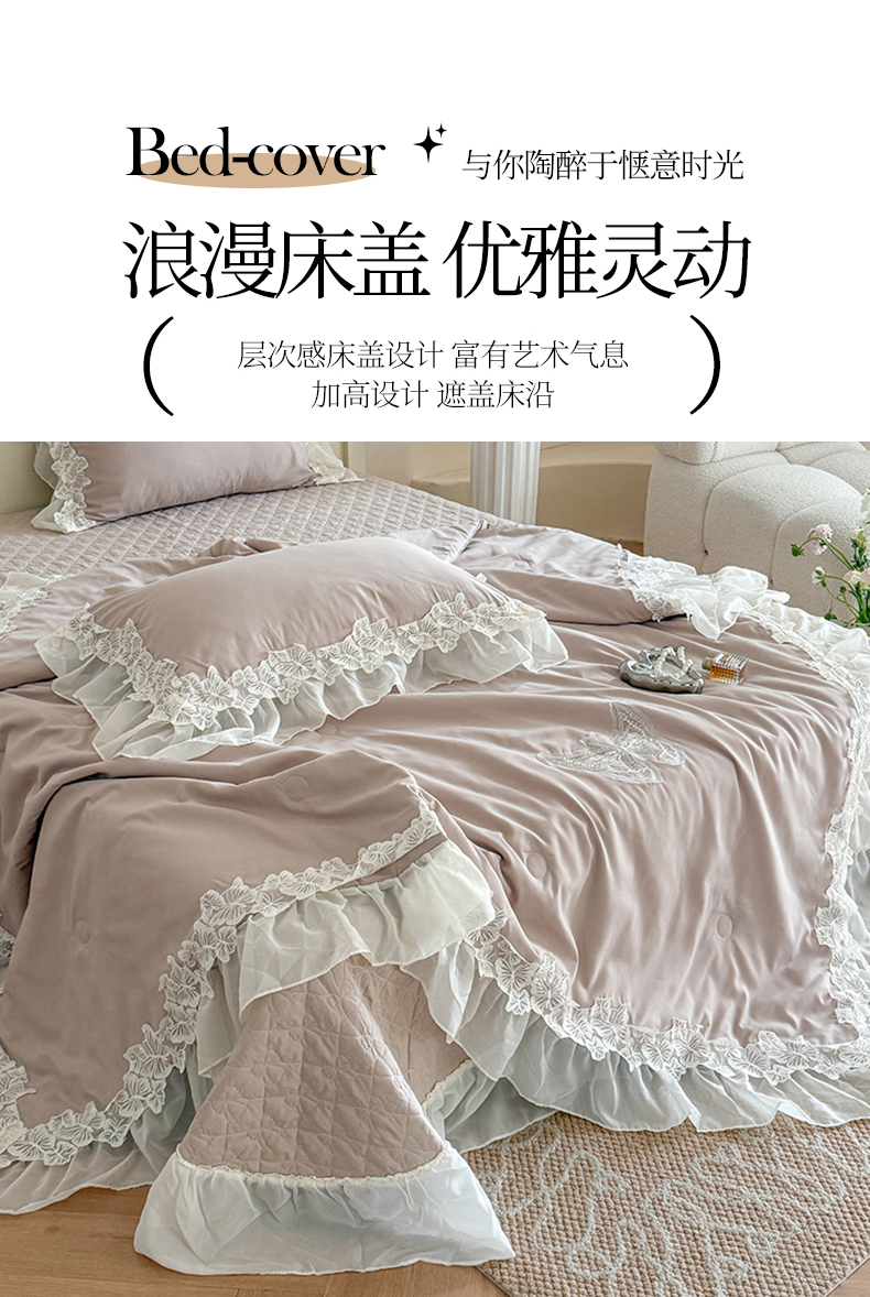 (总)吾欢心 2025新款公主风雪纺边四季通用夹棉床盖,床盖白,床盖粉,床盖黄,床盖咖,床盖绿,床盖抹茶绿,床盖紫