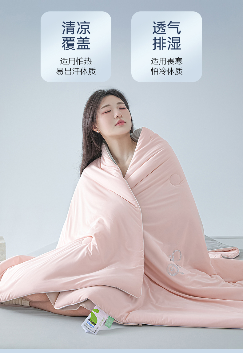 商品名称:永耀家纺 2026新款纯色双拼凉感丝大豆夏被夏凉被空调被 凉感-米粉