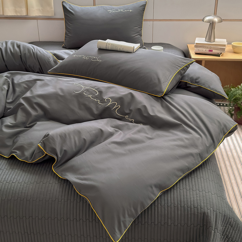Sweet dreams甜梦 2026新款全棉纯棉刺绣嵌绳床盖四件套 古典灰