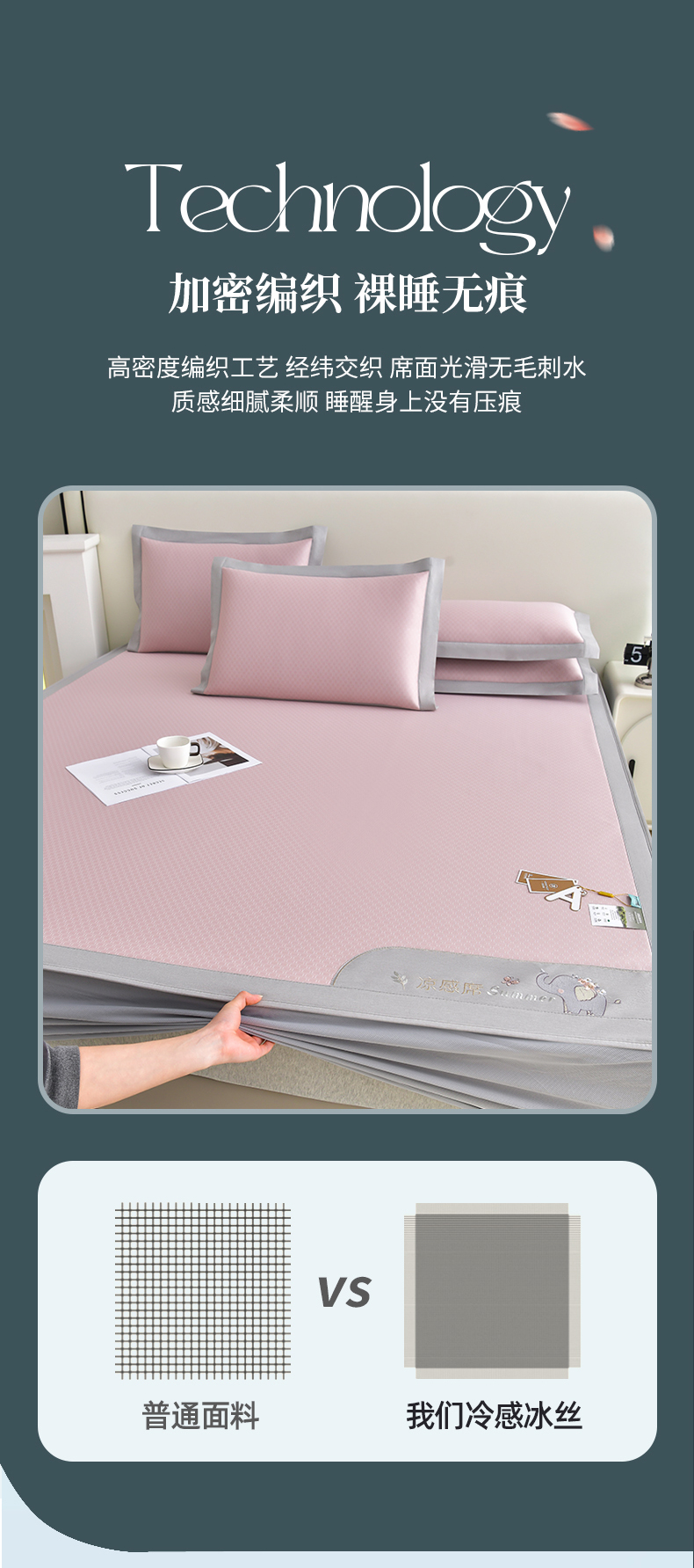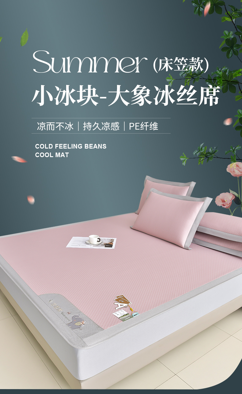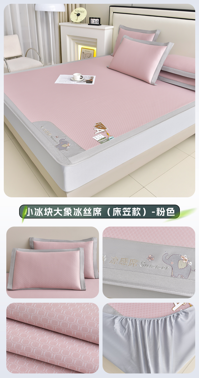 商品名称:小牛席业 2026新款小冰块大象凉感冰丝席(床笠款)凉席竹席藤席冰藤席乳胶席豆豆席 粉色