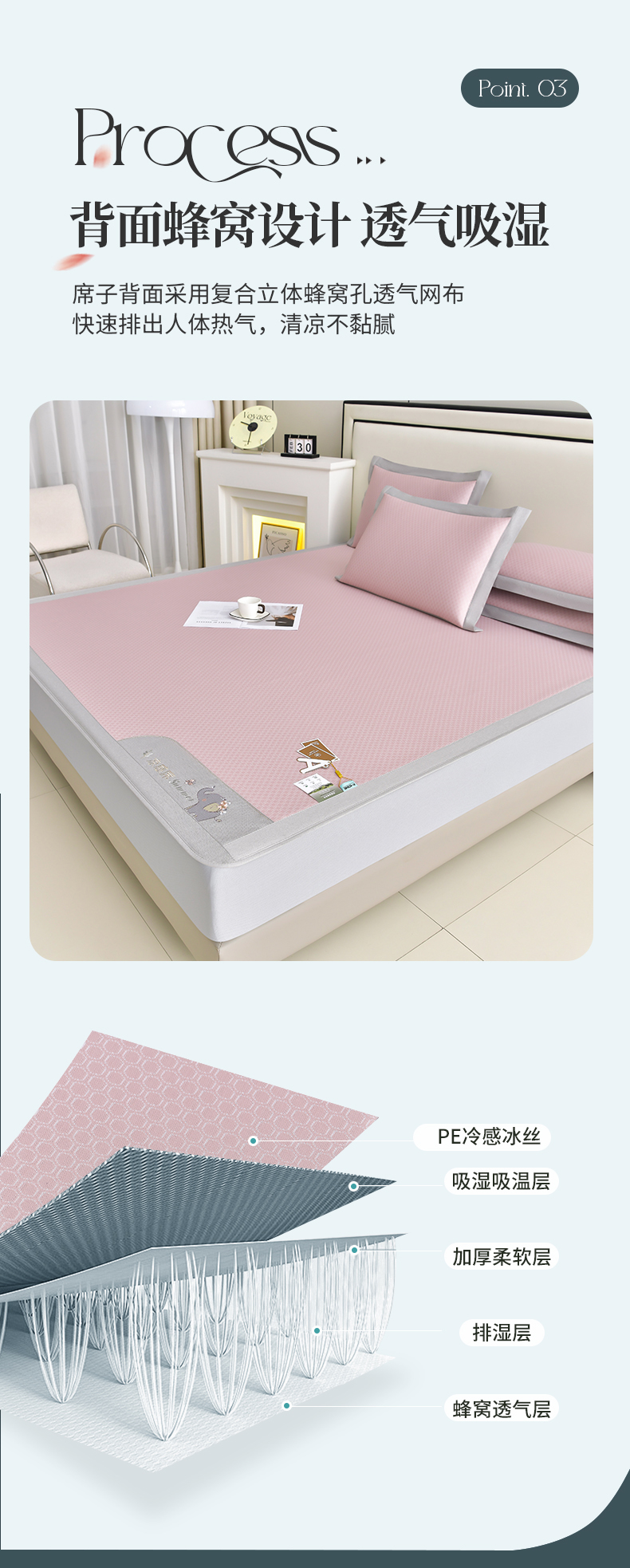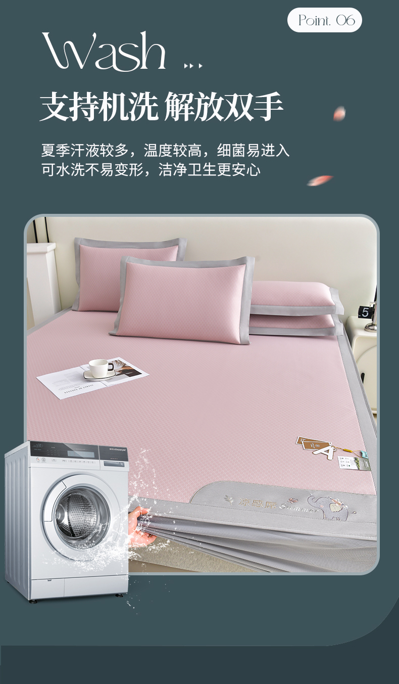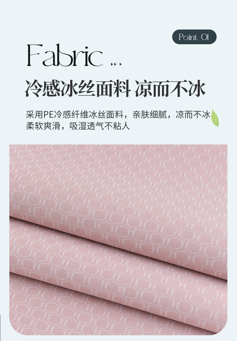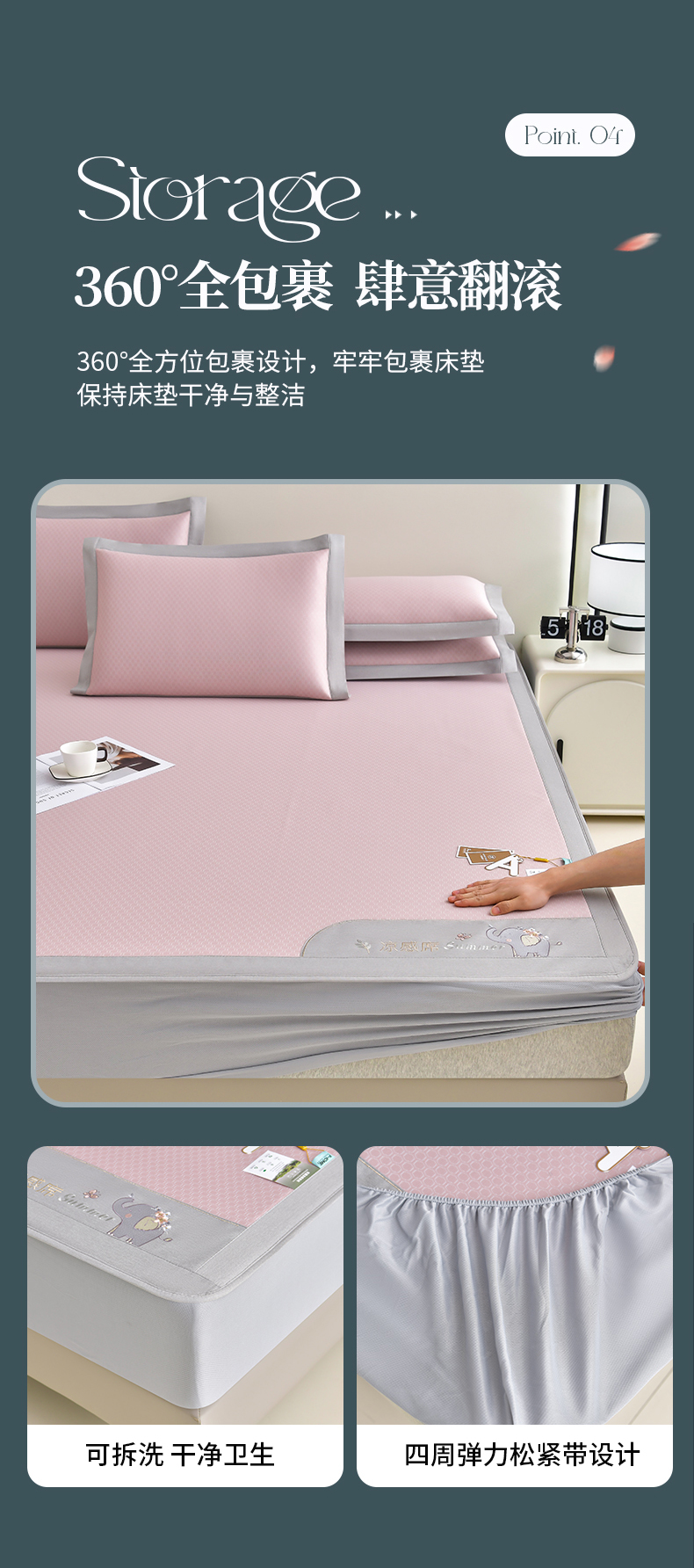 商品名称:小牛席业 2026新款小冰块大象凉感冰丝席(床笠款)凉席竹席藤席冰藤席乳胶席豆豆席 粉色
