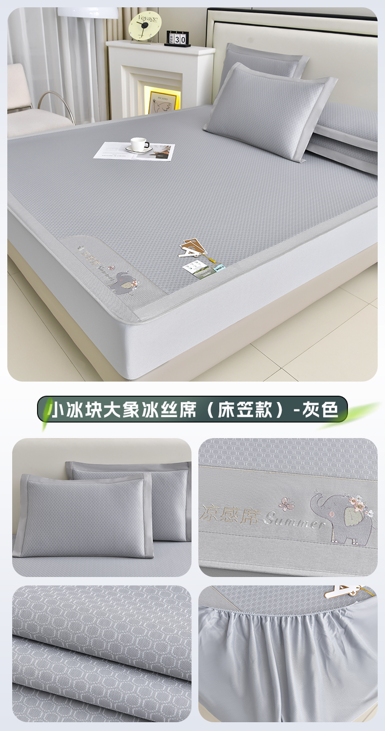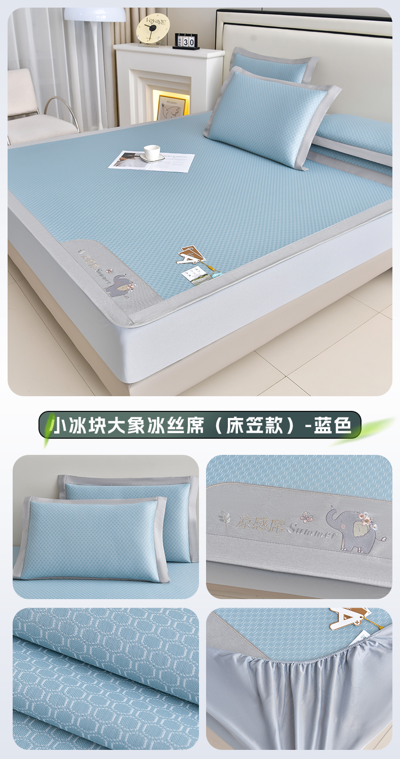(总)小牛席业 2026新款小冰块大象凉感冰丝席(床笠款)凉席竹席藤席冰藤席乳胶席豆豆席,绿色,粉色,灰色,蓝色,香槟