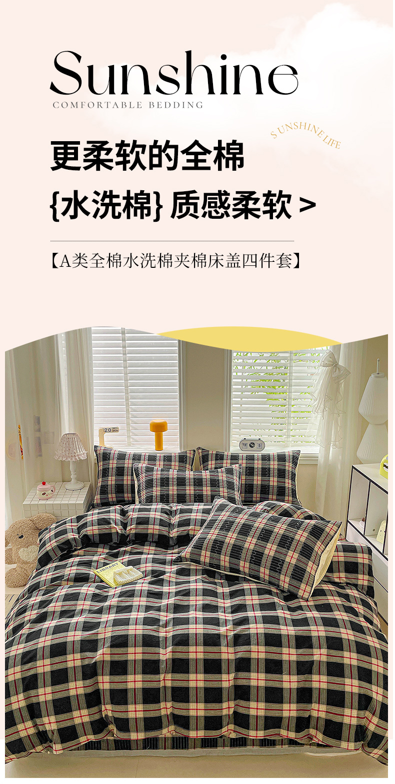 (总)梦精灵家纺 2026新款全棉纯棉色织水洗棉四件套绗缝夹棉床盖防滑床单四季通用米单人学生宿舍,浮影紫,米兰红,米兰咖,米兰米,木槿黑,可颂-咖,利奥-红,利奥-蓝,利奥-绿,罗恩-灰,维多利亚-米,西蒙-黄,西蒙-蓝,左岸-粉,雅灰,棕咖,鹅黄,幻影绿,桔红