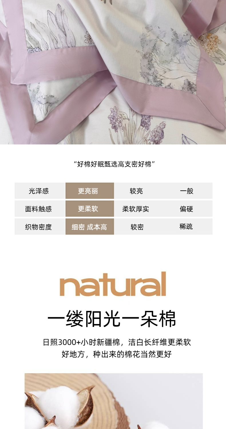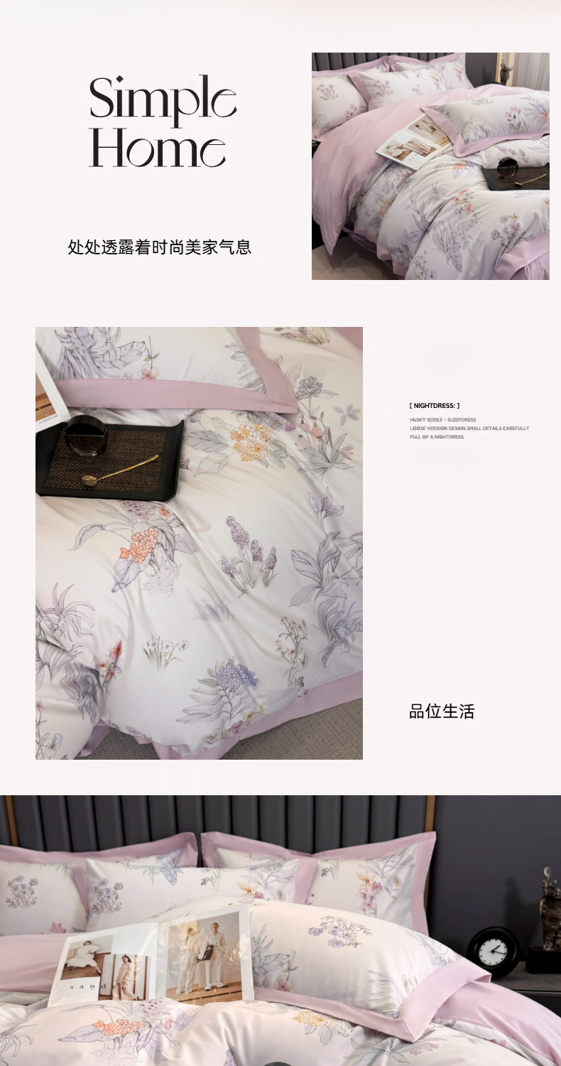 商品名称:乐蔻家纺 2026新款宽边数码精梳长绒棉纯棉四件套 悠冉 紫