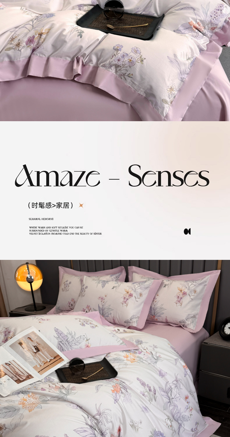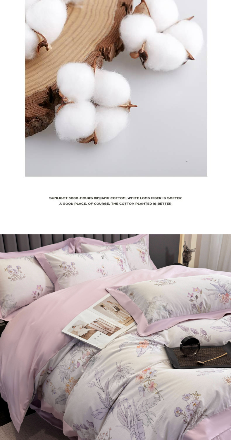 乐蔻家纺 2026新款宽边数码精梳长绒棉纯棉四件套 悠冉 紫