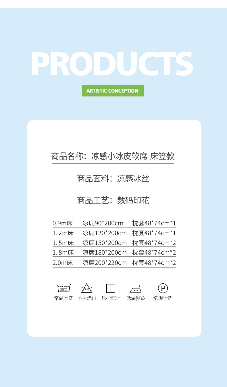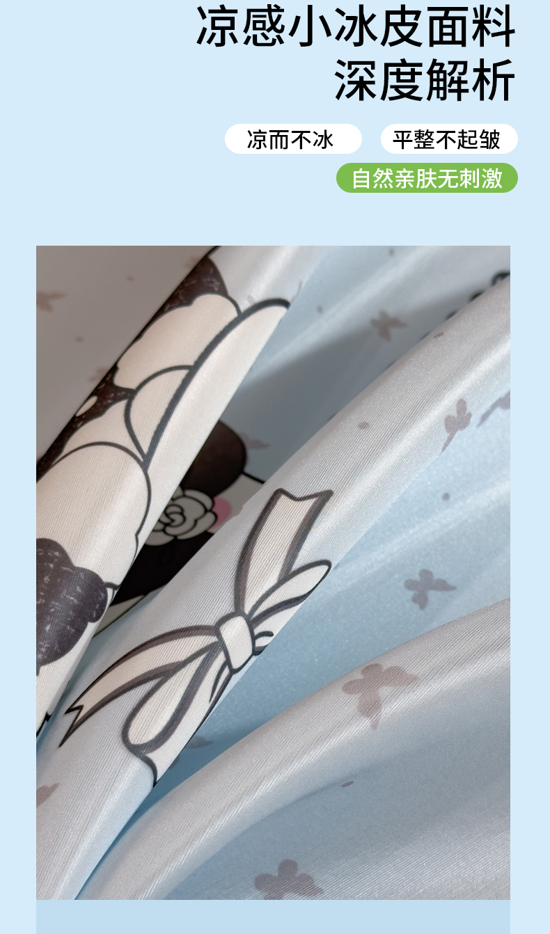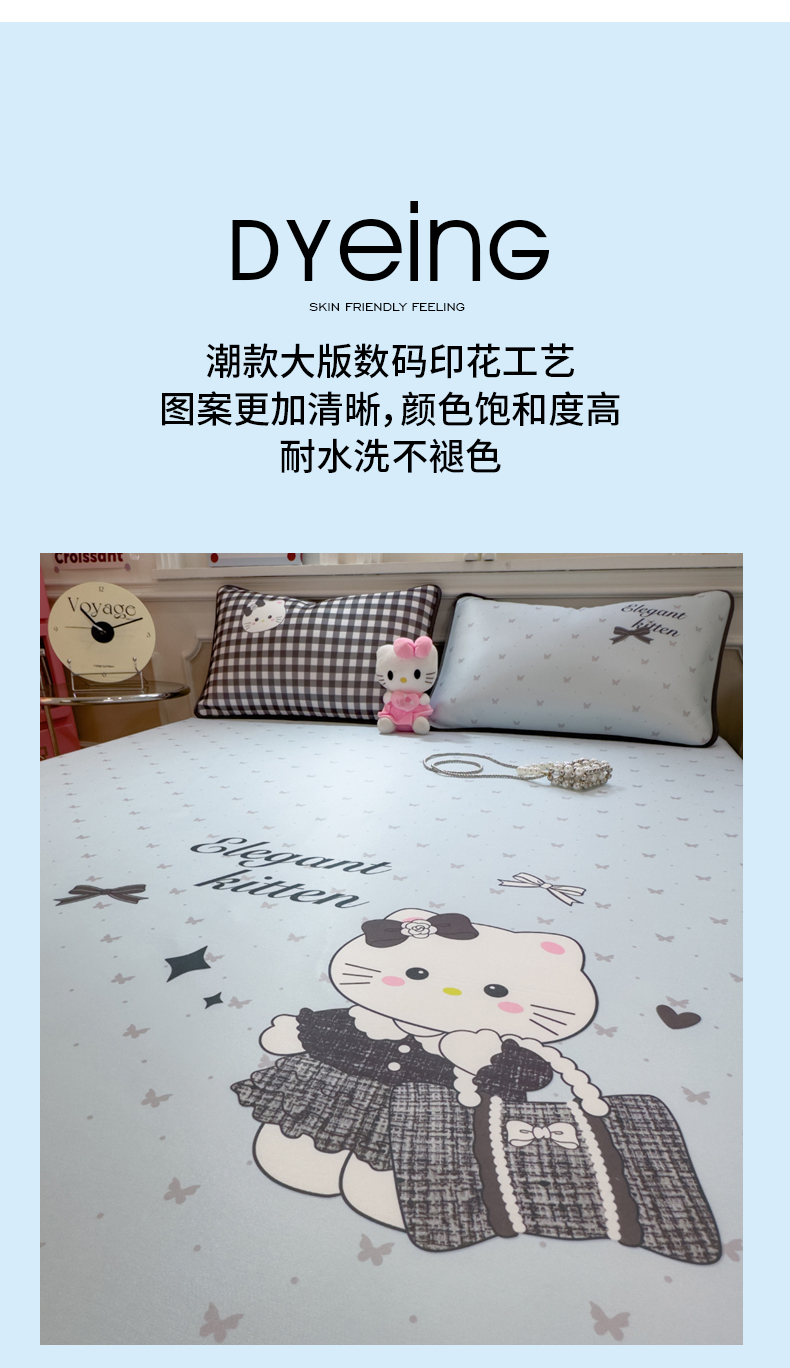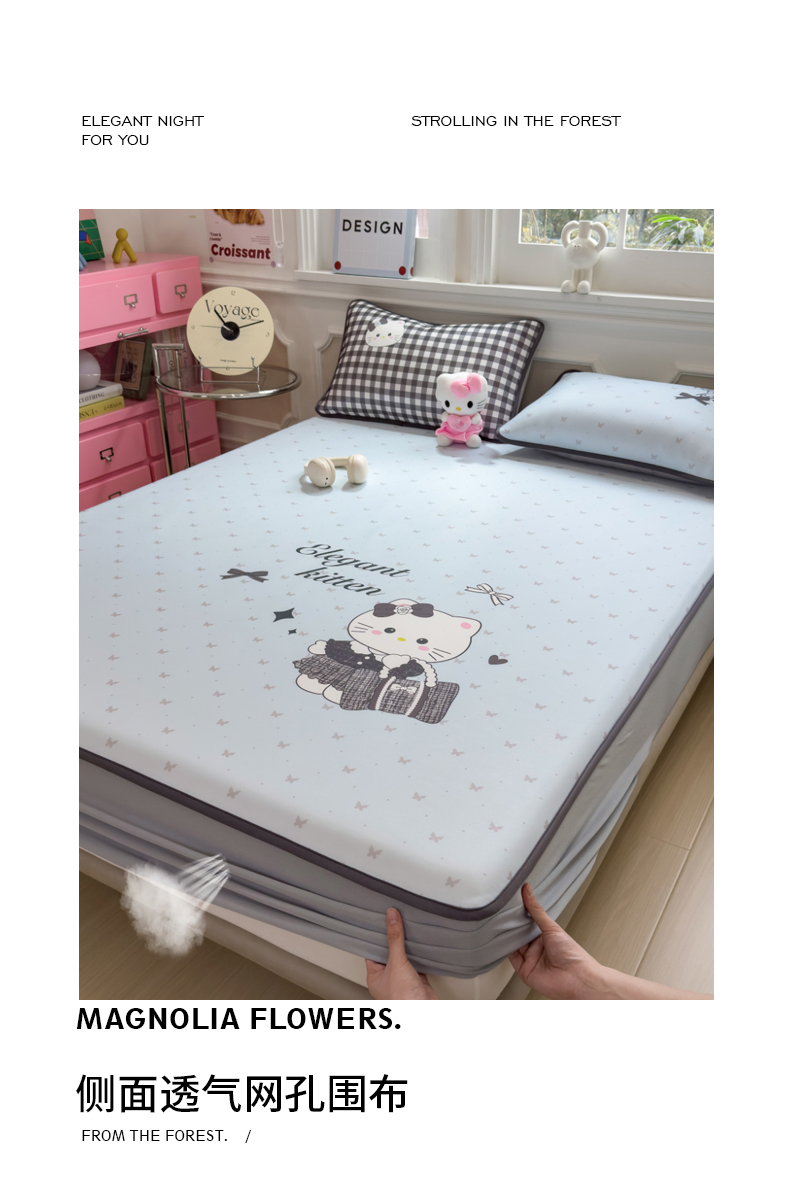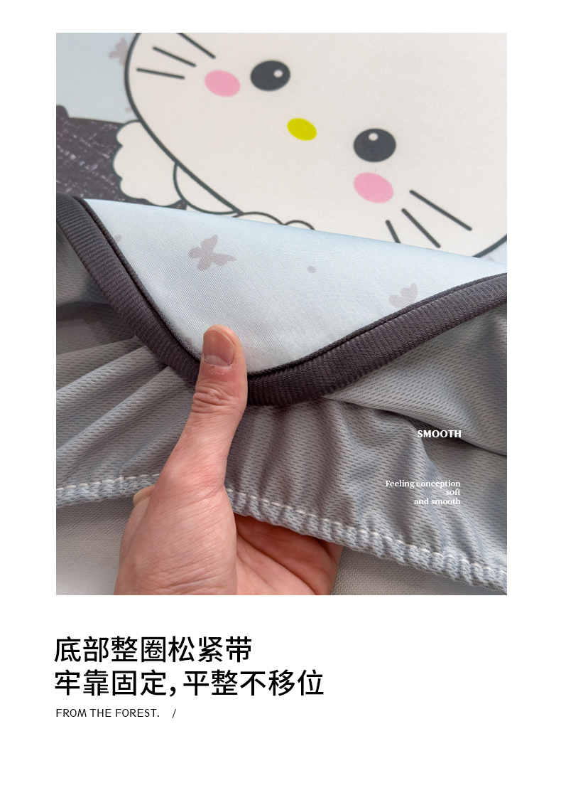 商品名称:丝羽坊 2026新款ins设计师原创大版小清新卡通冰皮复合软凉席 香风喵语-床笠款