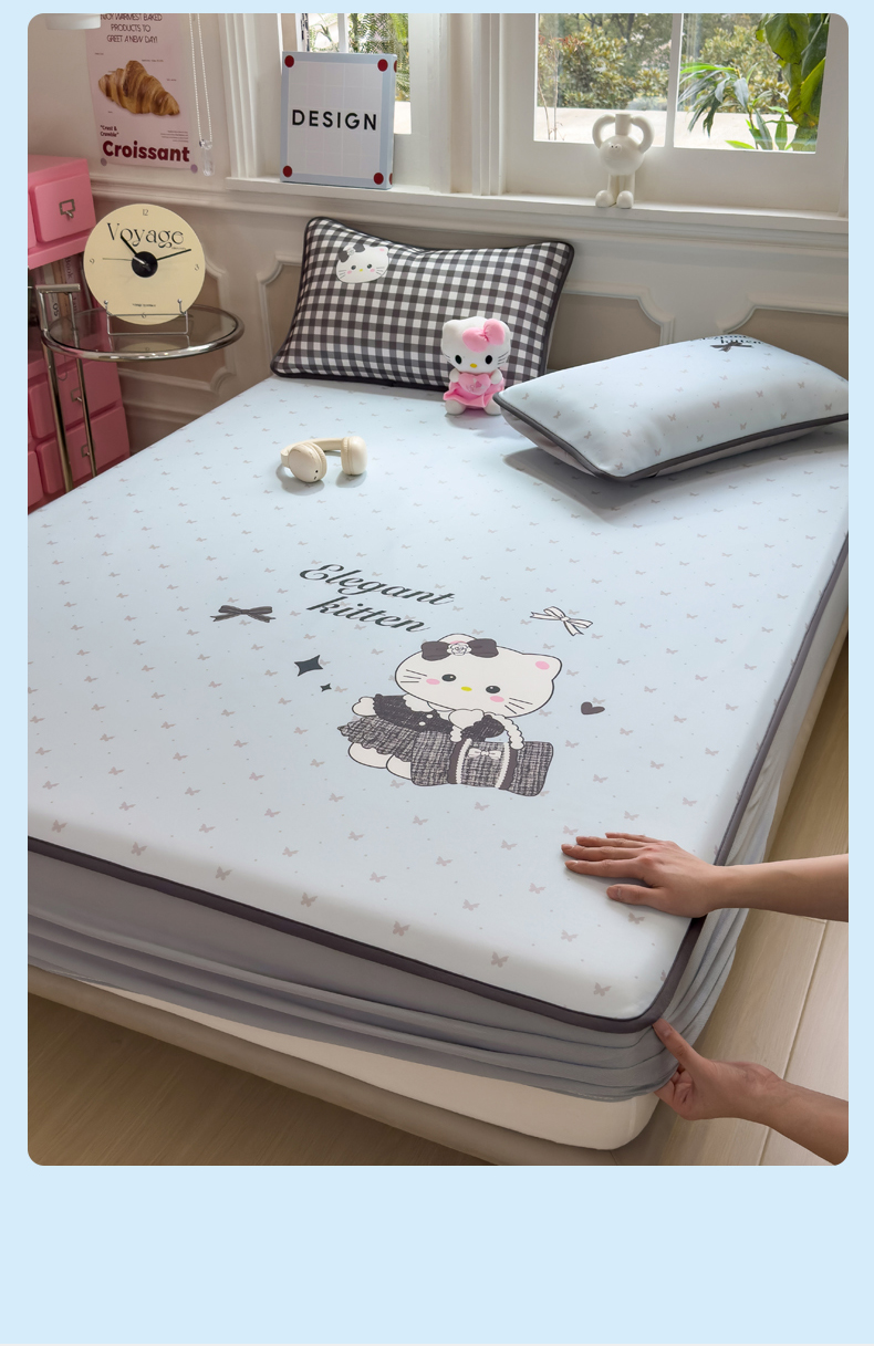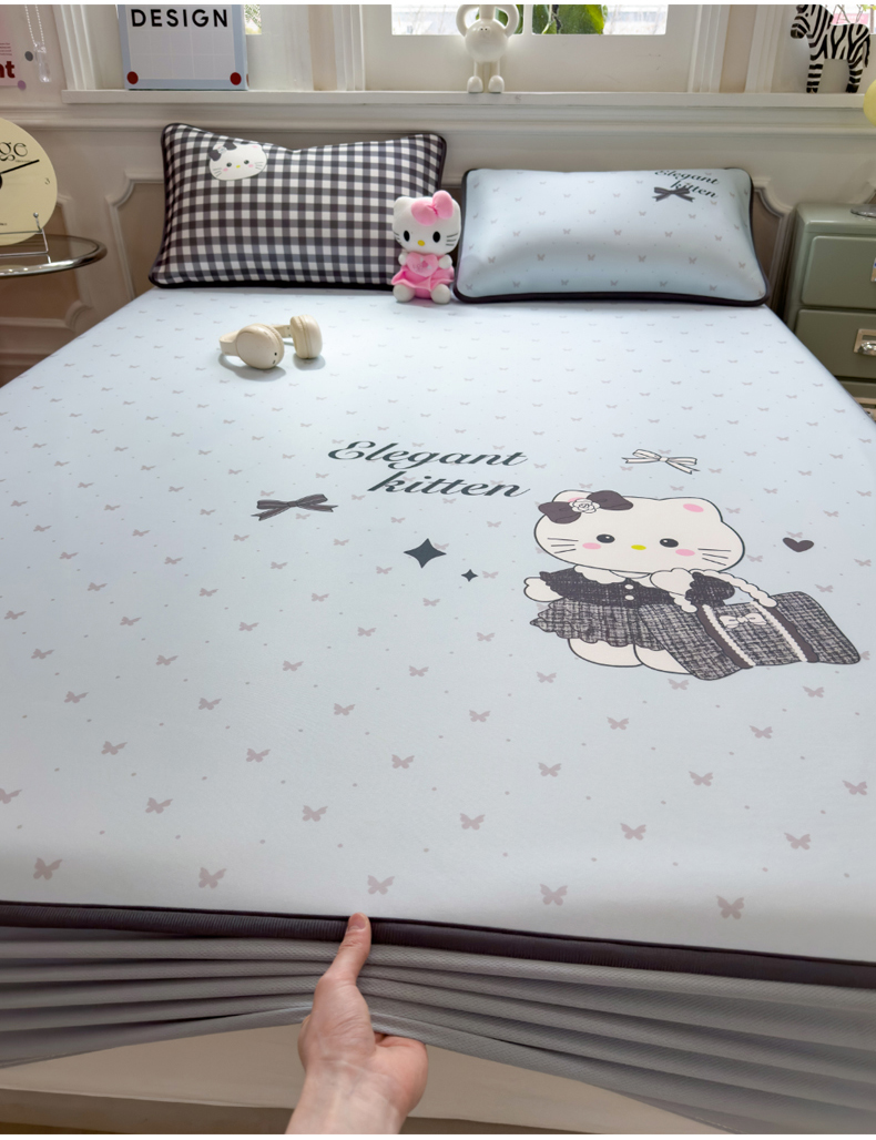 丝羽坊 2026新款ins设计师原创大版小清新卡通冰皮复合软凉席 香风喵语-床笠款