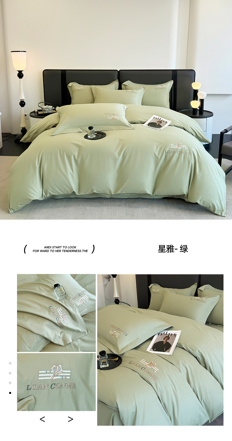 (总)乐蔻家纺 2026新款100S长绒棉纯棉素色款四件套,豆沙,卡其,梦幻蓝灰,奶咖紫,天空蓝,岩石灰,优雅绿,中国红