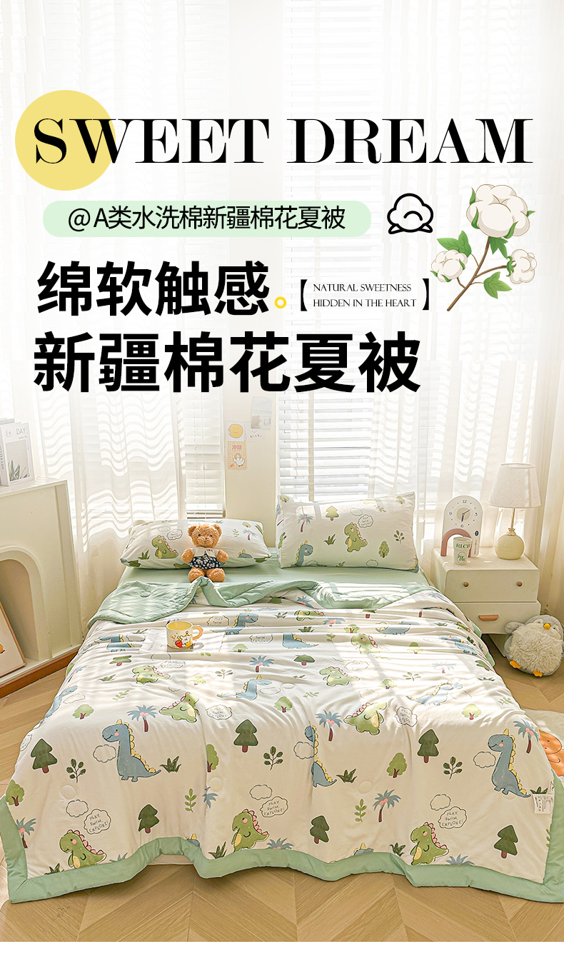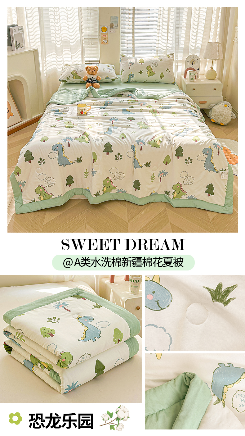 商品名称:晓时候 2026新款小清新印花夏被夏凉被空调被新疆棉花被被子被芯 恐龙乐园